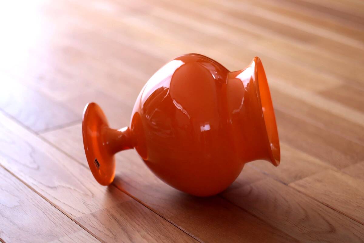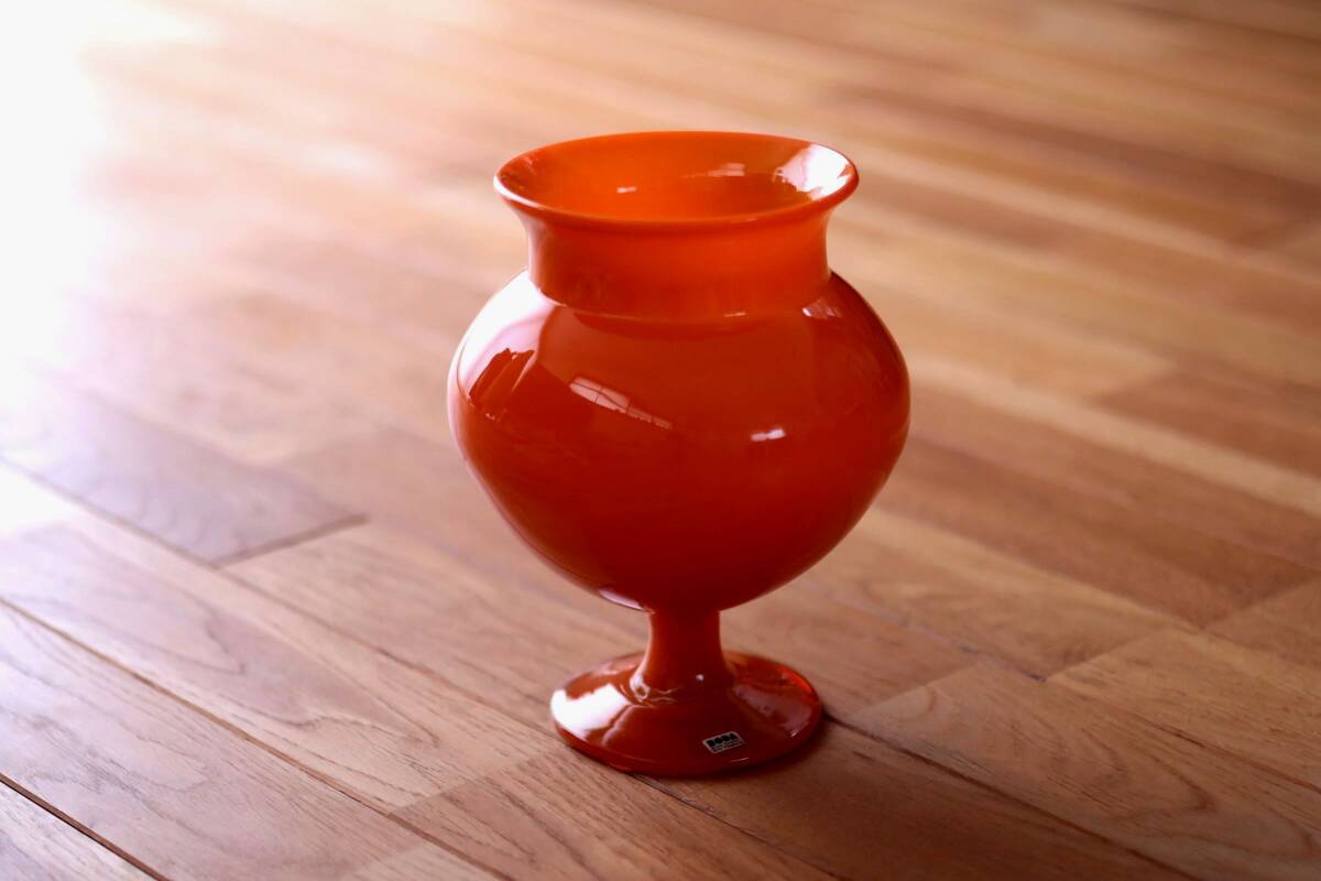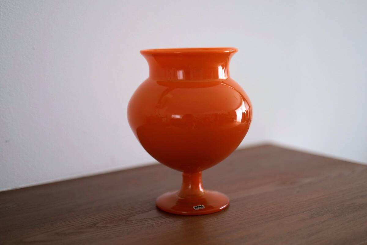 | 商品説明 | 品名:Glass Vase フラワーベース 花瓶 デザイン:Erik Hoglund エリック・ホグラン メーカー:Boda ボダ社 製造年代:1950年代-1970年代 カラー:Opaque Orange(半透明のオレンジ) サイズ:Φ15.5cm(最大径)H20.6m コンディション:外側は、多少の擦れはありますが綺麗です。底部は、擦れはありますが概ね綺麗です。内側は、汚れの付着や擦れはあまり見られず綺麗です。全体としましては、とても良いコンディションです。ガラス制作上特有の歪み、しわ、くぼみ、気泡の割れ等がある場合がございますのでご理解頂ければと思います。 859モデルの大きなサイズのフラワーベース。ぷっくりと膨らんだフォルムが可愛らしいですね。半透明のオレンジ色が綺麗です。底部にカットサインが入っています(画像7)。BODA社のステッカーが貼られたままの状態です(画像5)。*ステッカーは配送中に剥がれてしまう場合もありますので予めご了承頂きますようお願い致します。 |
