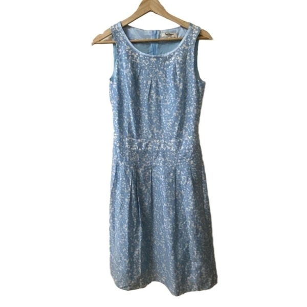 ポールスチュアート PaulStuart サイズ8 M ライトブルー×白 レディース ノースリーブ/ひざ丈/花柄 ワンピース