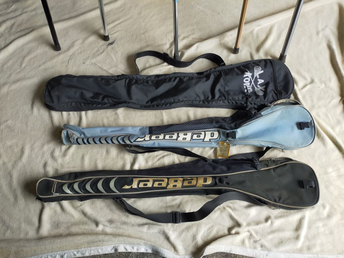 ラクロス用のスティック5本と専用ケース3点のセットです。