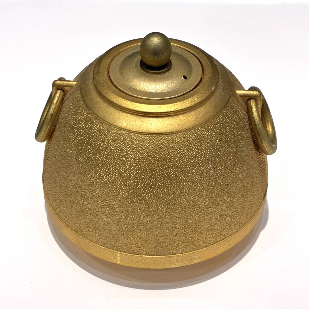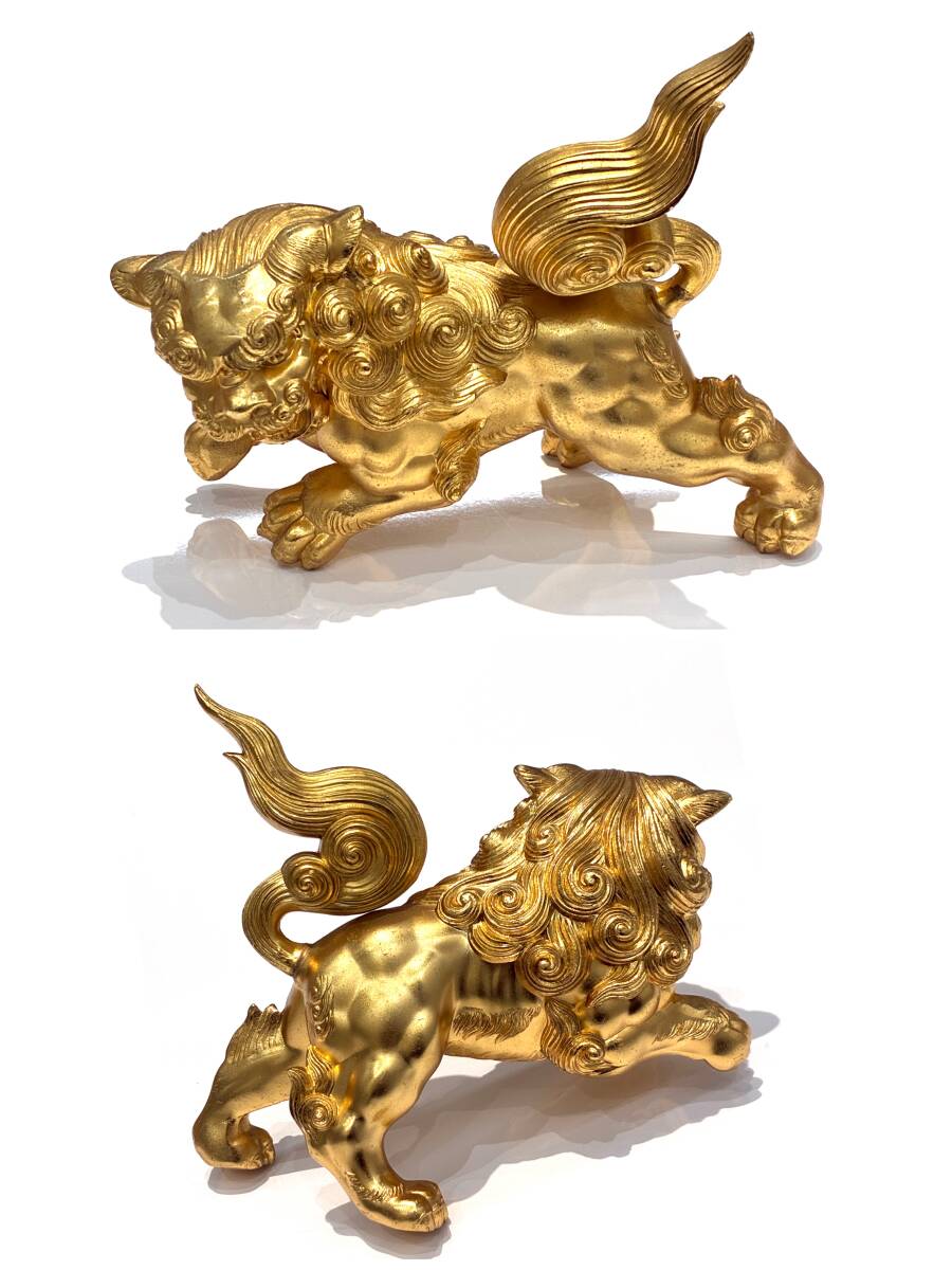 (MH2832) お得な2点まとめ! シーサー 金色 玉乗り 魔除け 獅子 置物 インテリア 黄金茶釜 茶釜 香炉 金メッキ 24KGP ゴールド