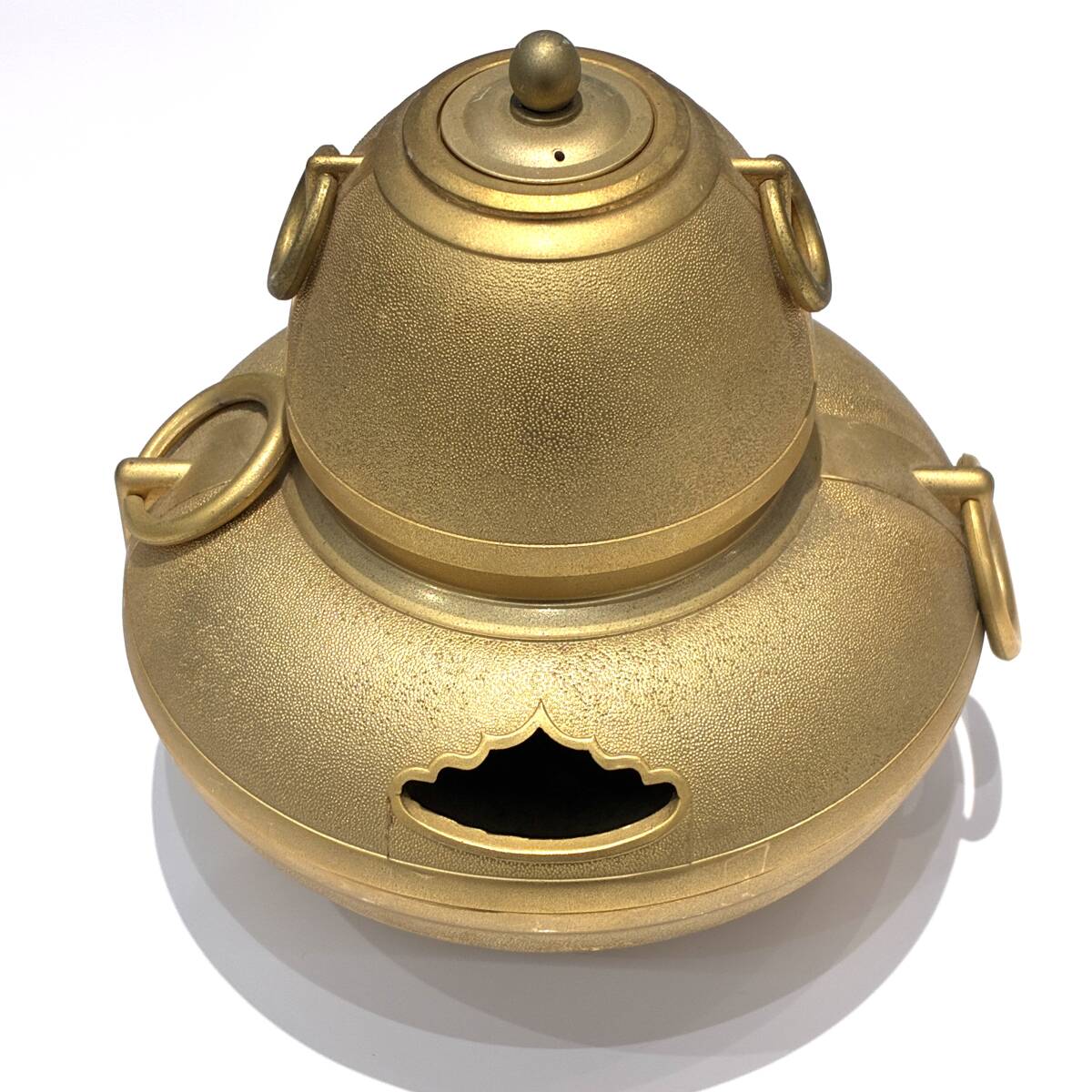 お得な2点まとめ! シーサー 金色 玉乗り 魔除け 獅子 置物 インテリア 黄金茶釜 茶釜 香炉 金メッキ 24KGP ゴールド