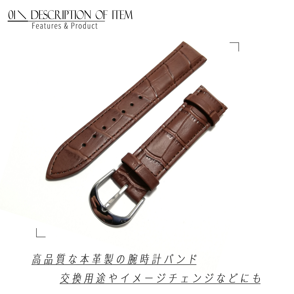 本革レザーの腕時計バンド: 美しいエンボス加工が全面に施された、 腕時計用の本革バンド。 多くの時計に適合するように しっかりとした縫製と革で作られています。 手持ちの時計バンドを簡単交換: 使用中にボロボロになりやすい革バンドの交換や、 色の変更でイメージチェンジにも。 取付用の棒ピンが付いていますので お手持ちの時計のバンドを手間なく交換可能です。 多くのブランド・メーカー時計に適応する 本革バンドの交換セットになります。 |