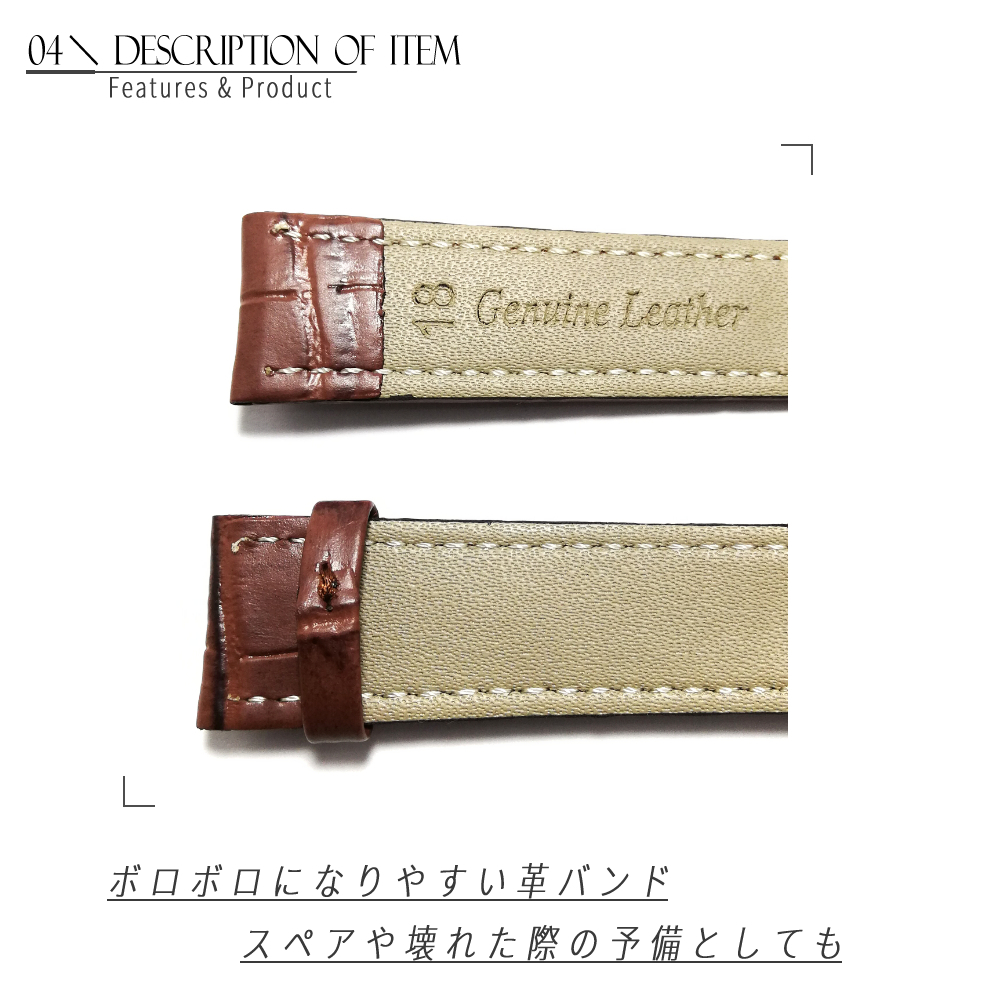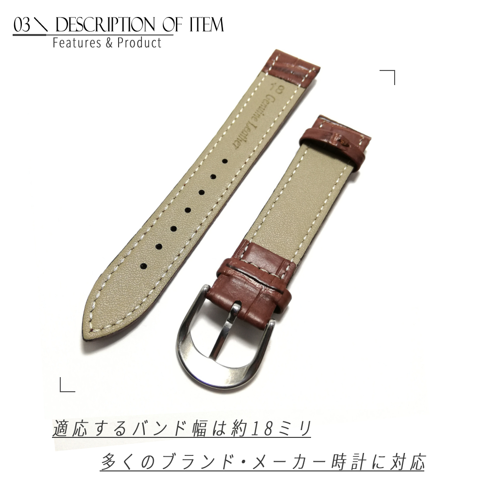 [ 長ベルト ] 全長 120 mm [ 短ベルト ] 全長 90 mm ( 金具含む ) 適応幅 18 mm ( 文字盤との接合部 ) 表示はメーカー規定の表示サイズです 実寸とは僅かな差異が有ることがございます。