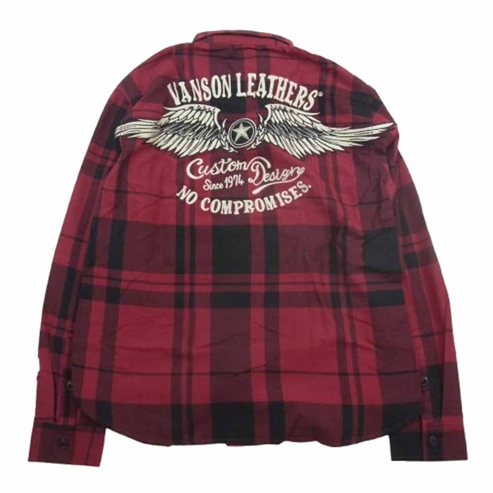 | 商品名 | VANSON バンソン ロゴ刺繍 チェック シャツ レッド系 L【中古】 |