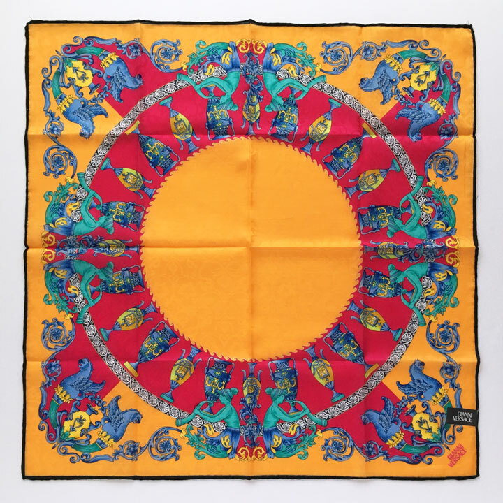 ヴェルサーチ / GIANNI VERSACE ハンカチ 壺柄 透かし入り ロゴ刺繍 オレンジ/赤【6350】