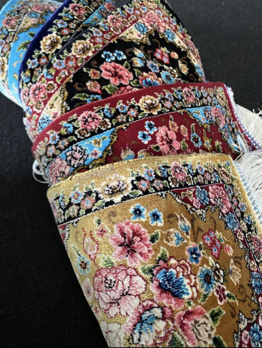 クム絨毯の歴史は1930年頃からと浅く、最初はウール絨毯を、後にシルク絨毯を織るようになりました。絹の産地としても有名なクムで、現在作られるほとんどの絨毯は100%シルク製です。