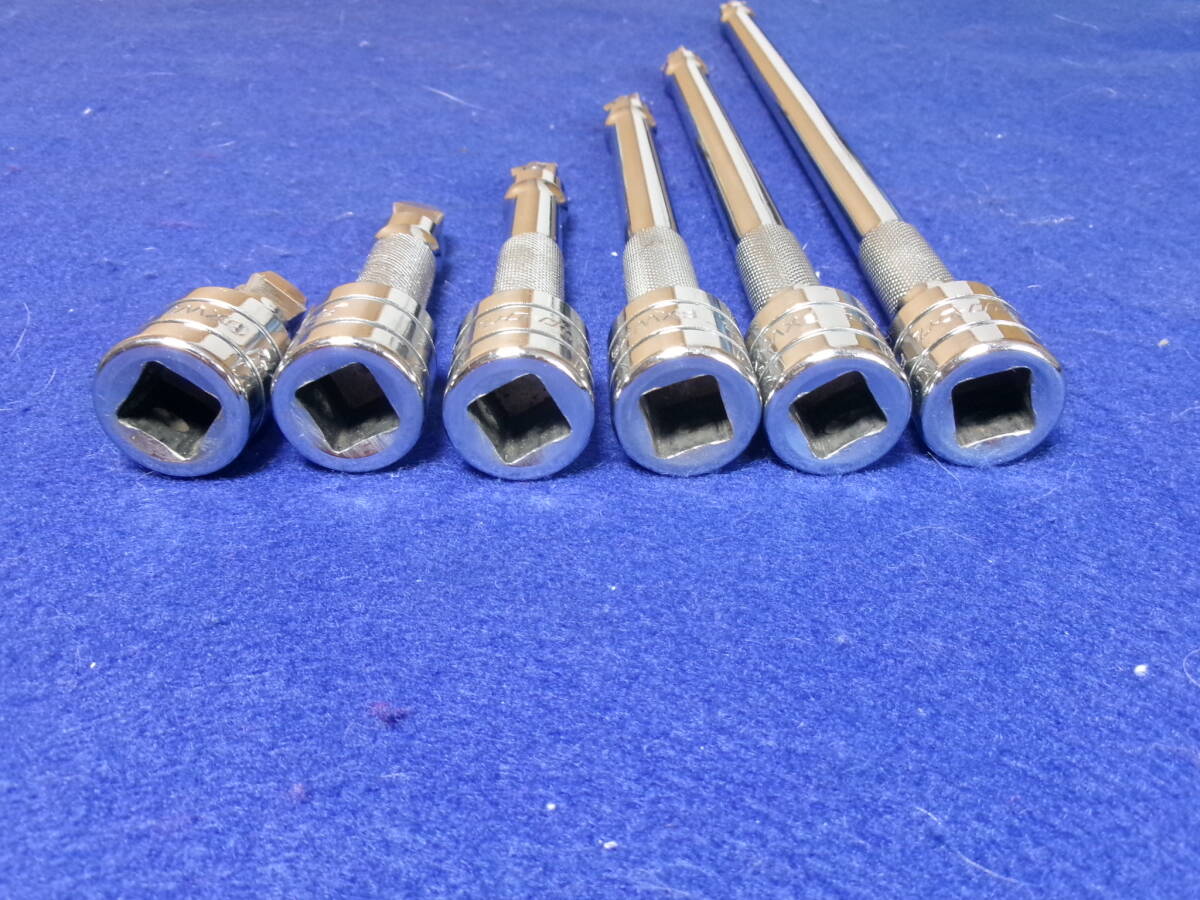 □スナップオン ウォブル エクステンション バー 6本セットになります。 □差込3/8 (9.5mm)です。 □セット内容 ・FXW1 41mm ・FXWK3 76mm ・FXWK4 102mm ・FXWK6 153mm ・FXWK8 202mm ・FXWK11 279mm □使用に伴う傷、汚れ等ありますので、完璧をお求めの方および神経質の方は入札ご遠慮ください。 ★商品到着後、すみやかに受け取り連絡出来る方のみご入札ください。 ★落札から24時間以内のご連絡、48時間以内にご入金手続きが完了できる方のみご入札ください。24時間過ぎた場合は、予告なく落札者都合で削除いたします。キャンセルの多い方は、こちらの判断で24時間以内でも削除する場合がありますので、早めのご連絡をお願い致します。 ★上記のお約束が守れなかった方は今後一切取引いたしませんのでブラックリストに登録させていただきます。 ★ 落札後、連絡されない方が多数いるため、迷惑行為として「非常に悪い」評価をしますのでご注意ください。 | ||