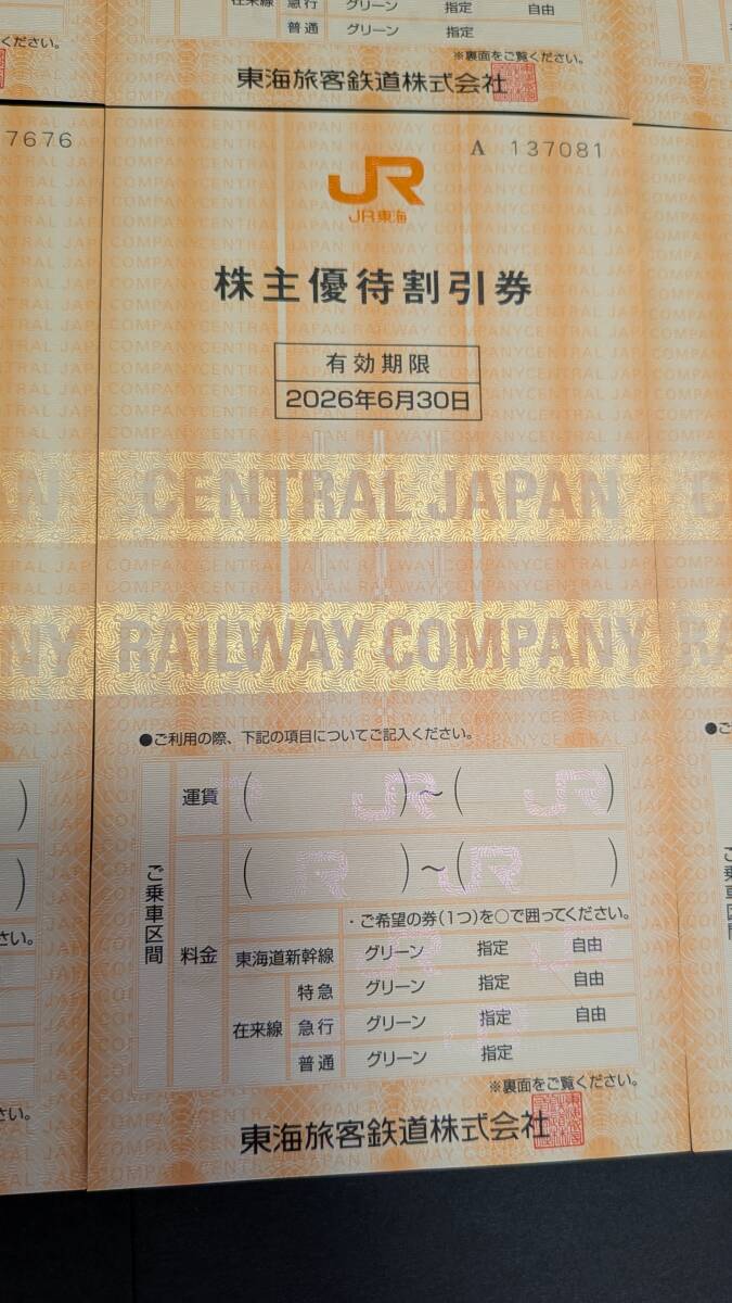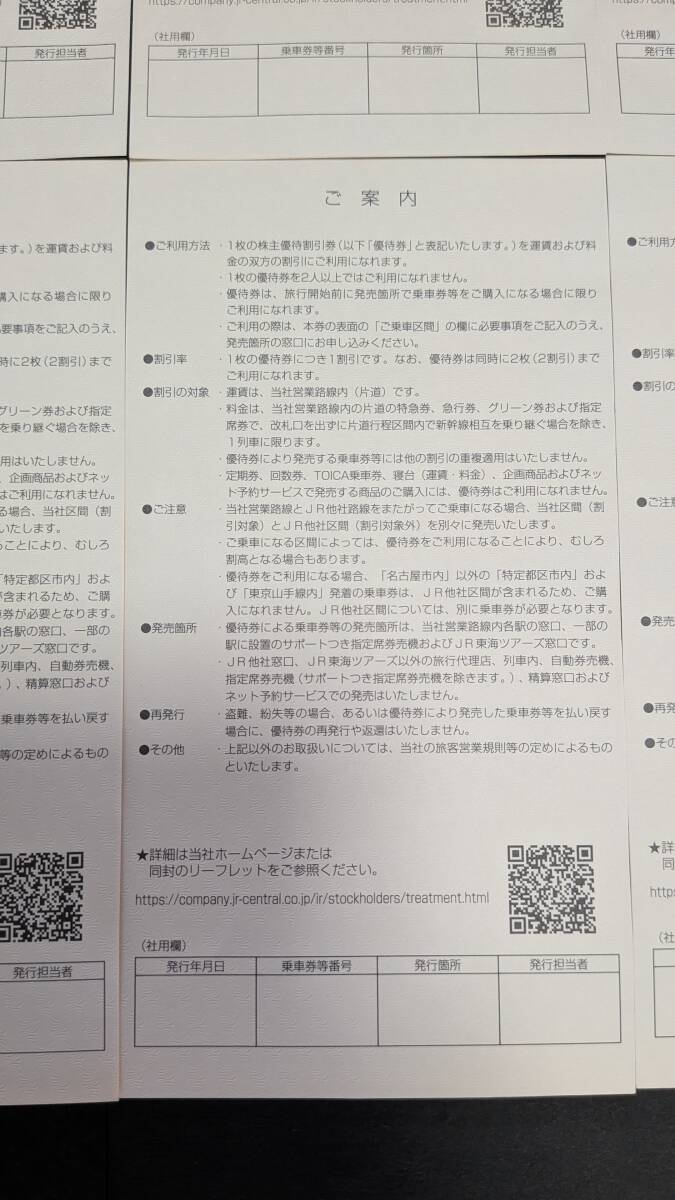 この株主優待券を使うと新幹線の料金が1割引になります。