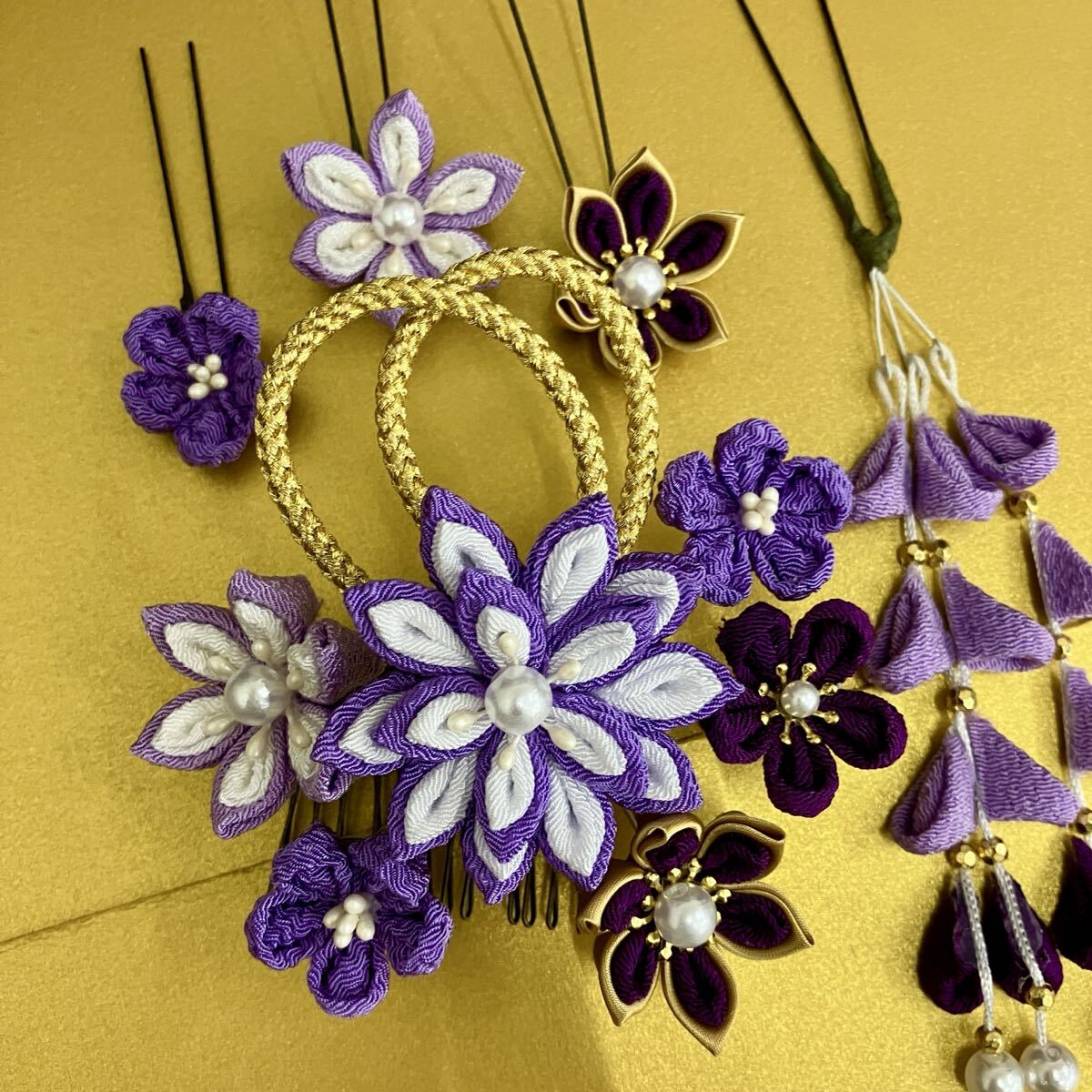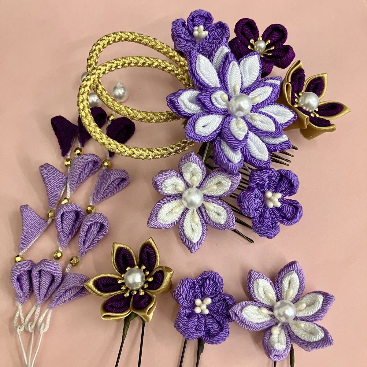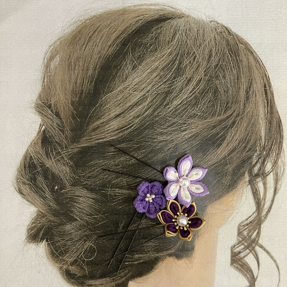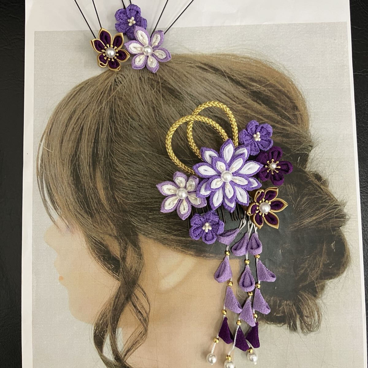 髪飾り つまみ細工 成人式 卒業式 七五三 振袖 着物 和装 送料無料 紫 F552