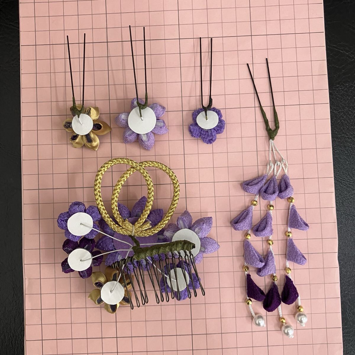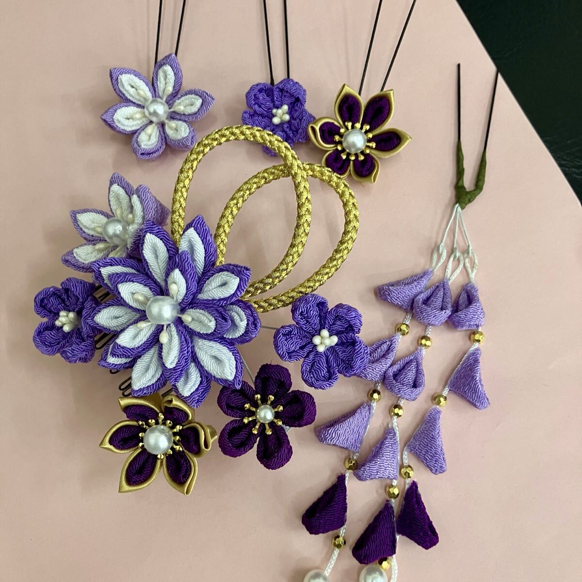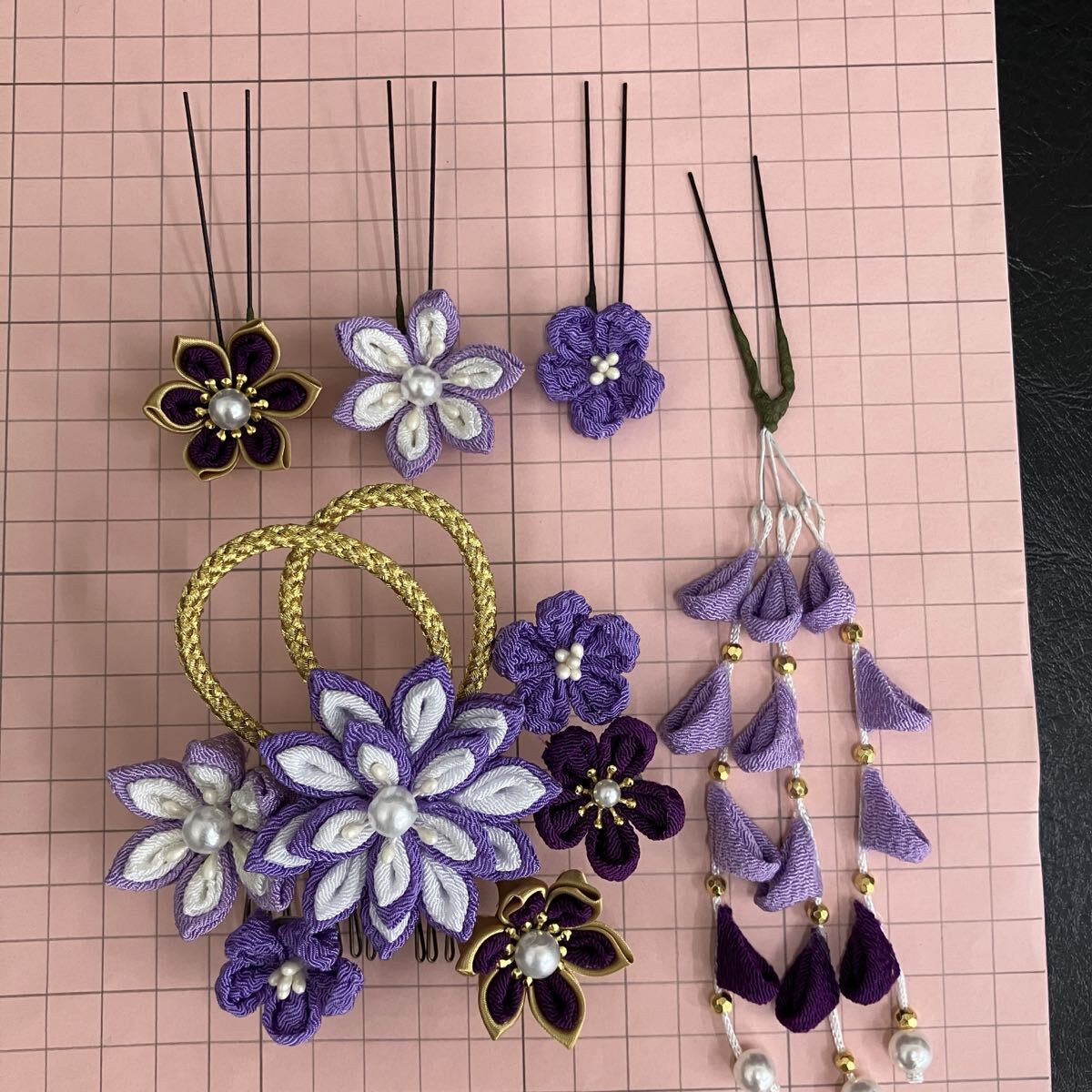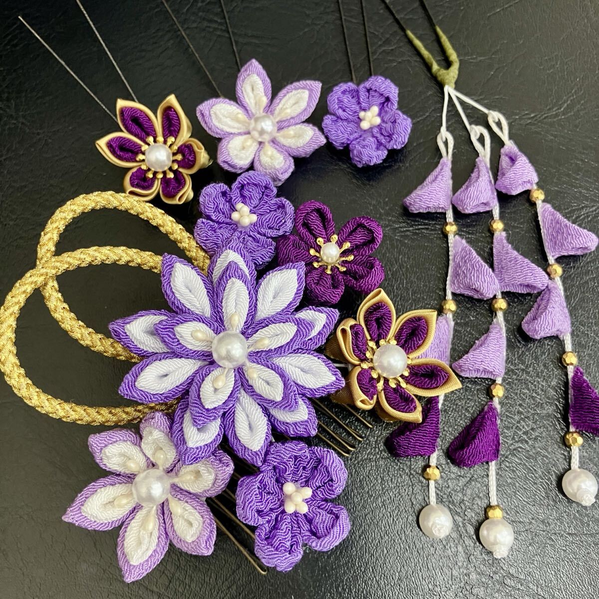 髪飾り つまみ細工 成人式 卒業式 七五三 振袖 着物 和装 送料無料 紫 F552
