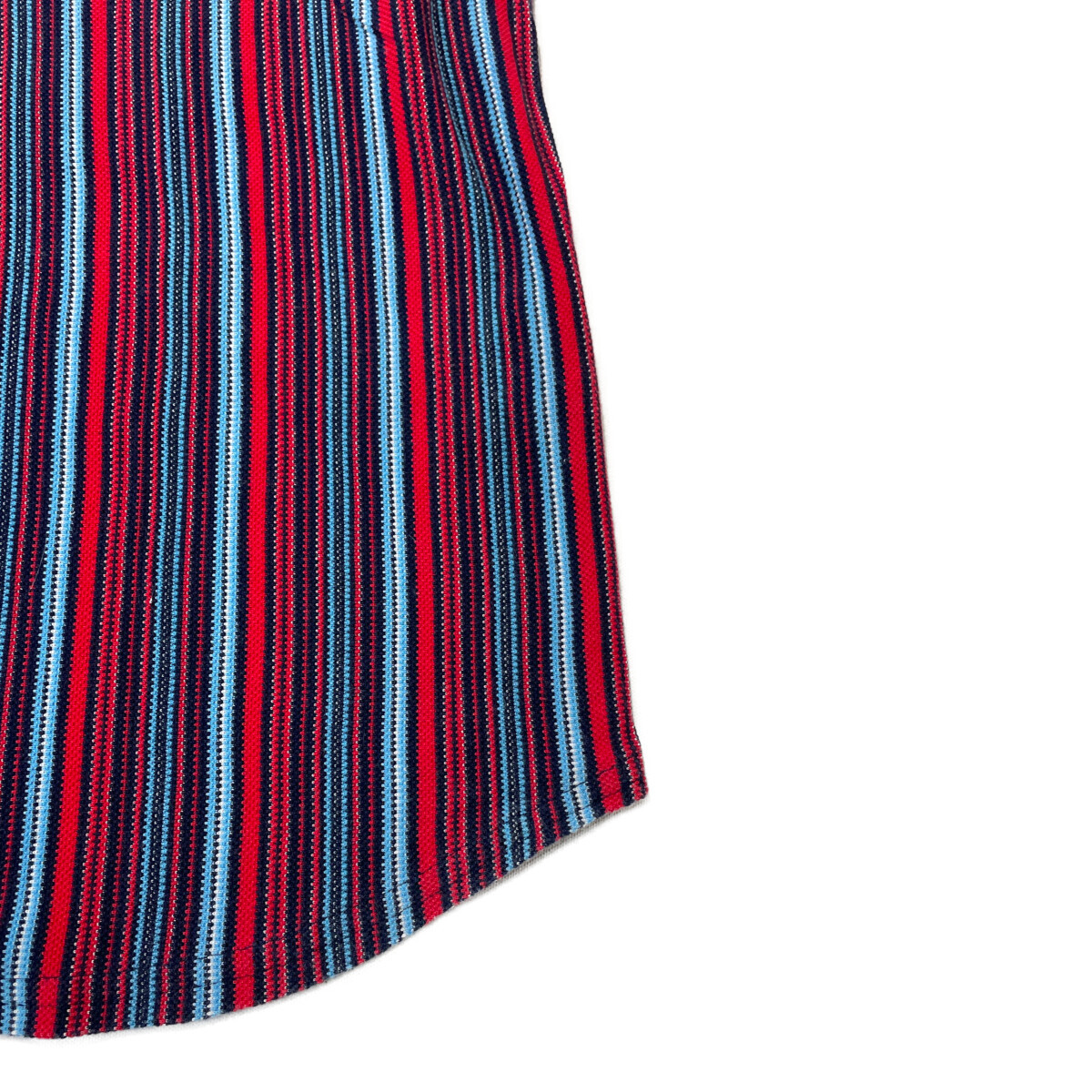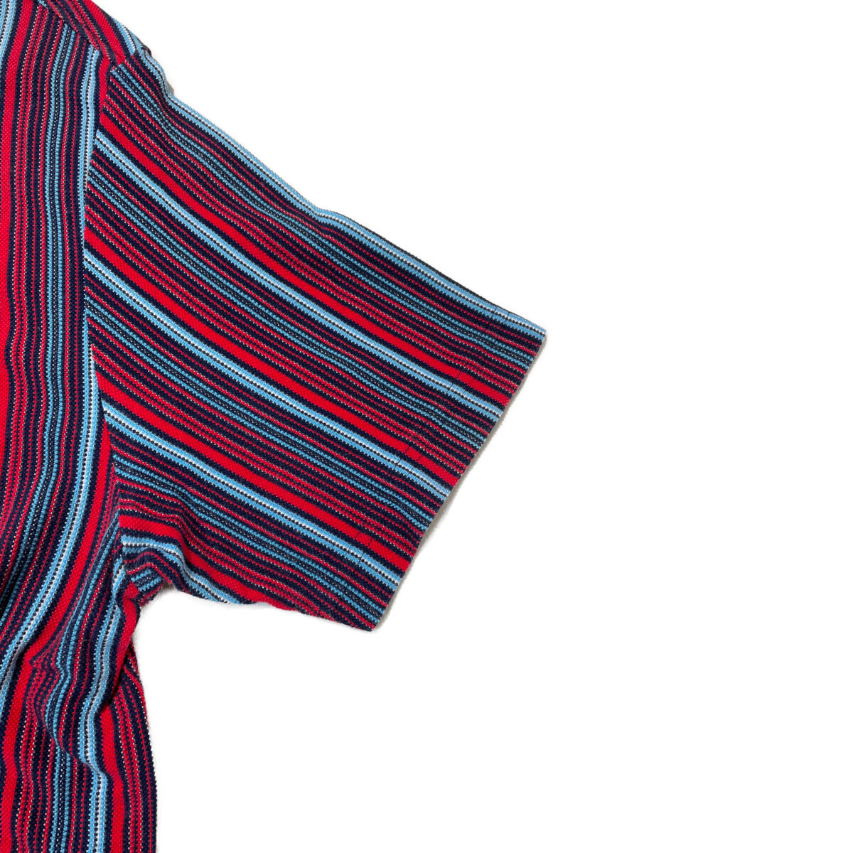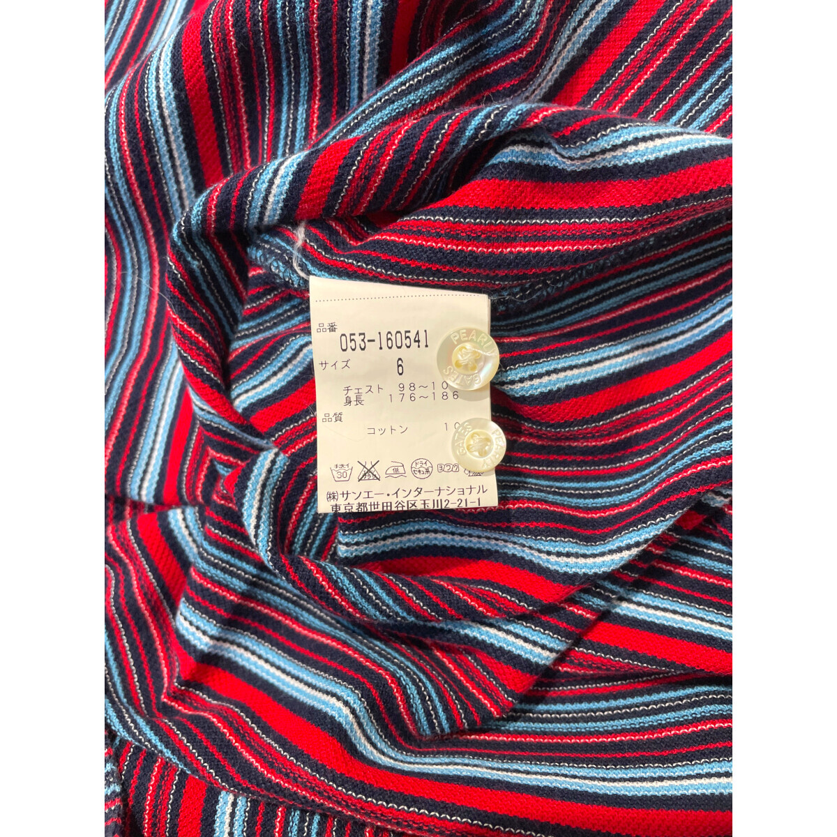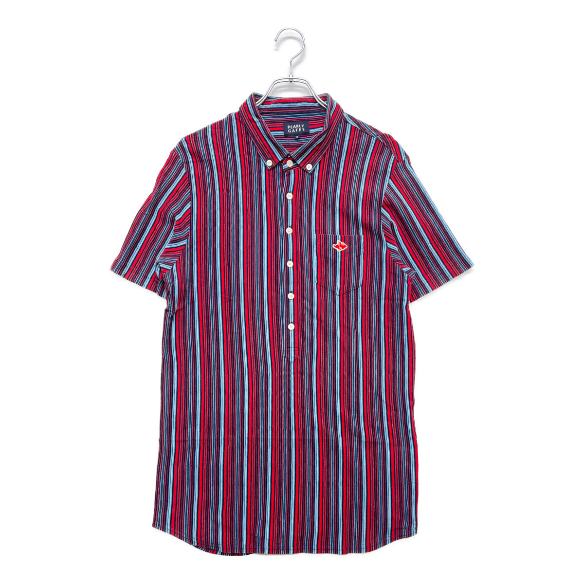 coco 中古【値下げ】 パーリーゲイツ メンズ 半袖ポロシャツ 6(LL) 赤×紺×青系 ボタンダウン ストライプ レターパックプラス発送可 92509