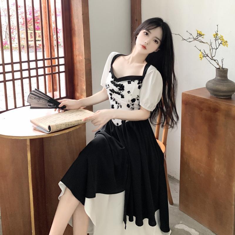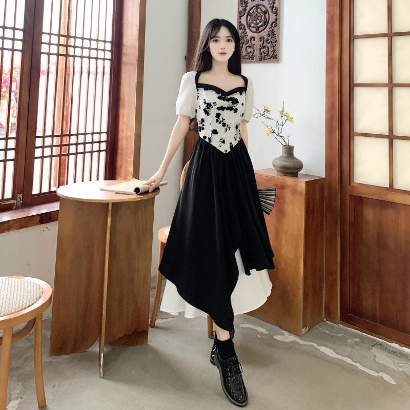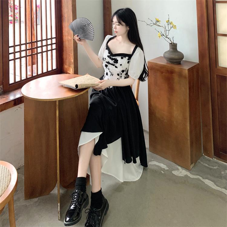 【新品】大きいサイズ モノトーン花柄ロングワンピース 4L半袖春夏秋レディース
