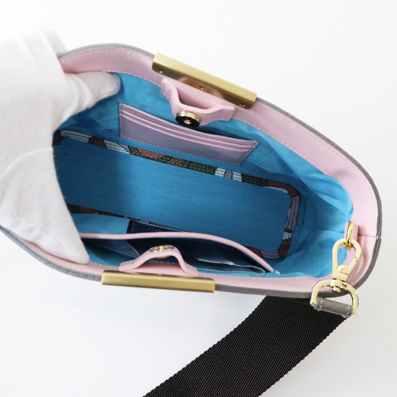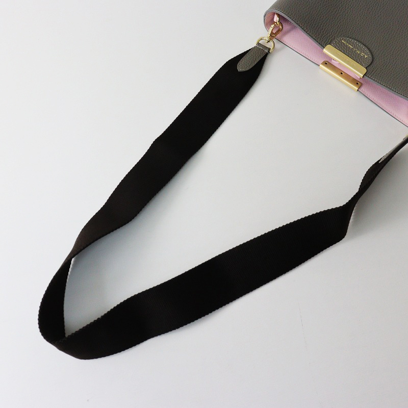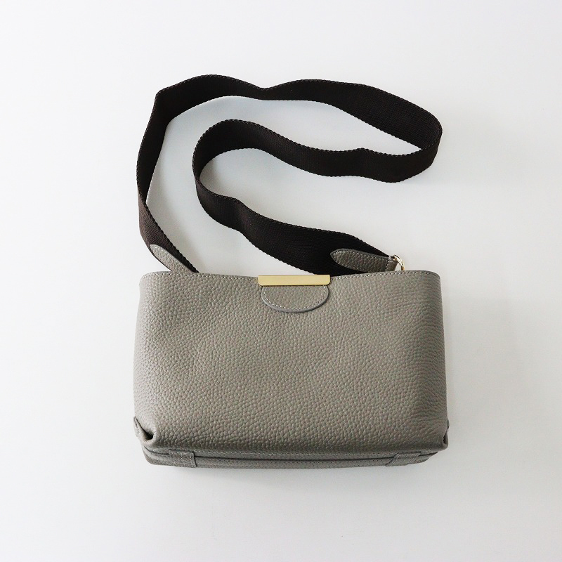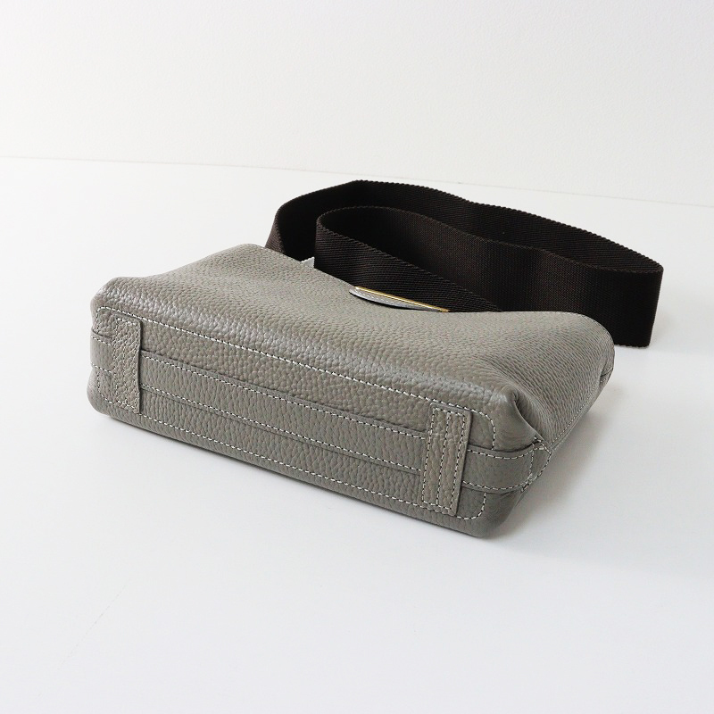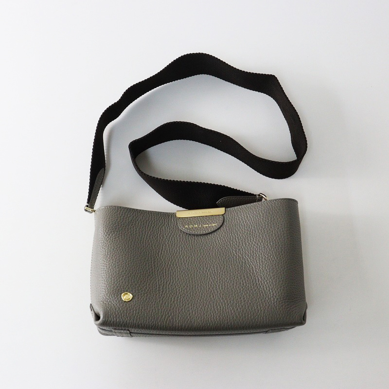 極美品 A.D.M.J エーディーエムジェイ 牛革 ボトムアクセント 斜め掛けショルダーバッグ/グレー レザー ポシェット【2400014553628】