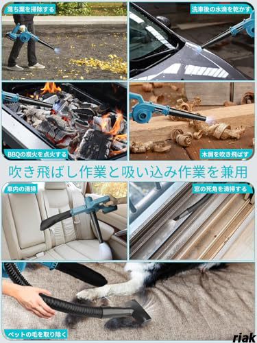 【庭や車周りなど屋外で手軽に使用可能】 充電式ブロワー 集塵機付き 軽量 落ち葉掃除機 高出力 マキタ18Vバッテリー対応