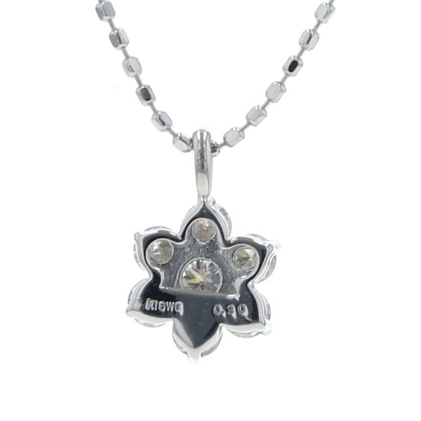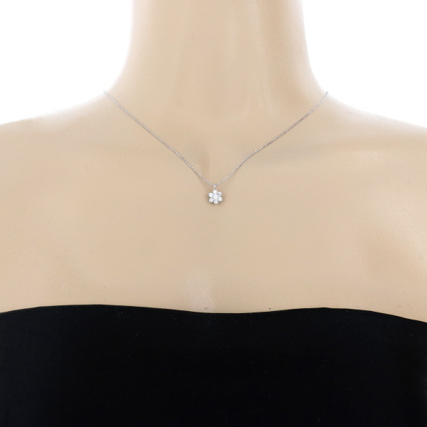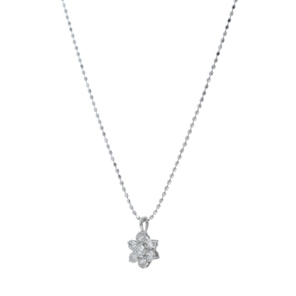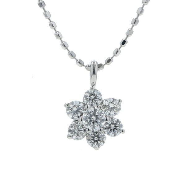 | 商品紹介 | ホワイトゴールドのダイヤモンドネックレスです。 ダイヤモンドが花びらのように集まった、可憐なフラワーモチーフのデザインです。 胸元で繊細に煌めき、上品で可愛らしい雰囲気を演出します。 |