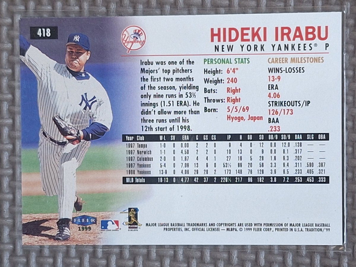 1999 Fleer Tradition #418 HIDEKI IRABU New York Yankees Lotte Orions