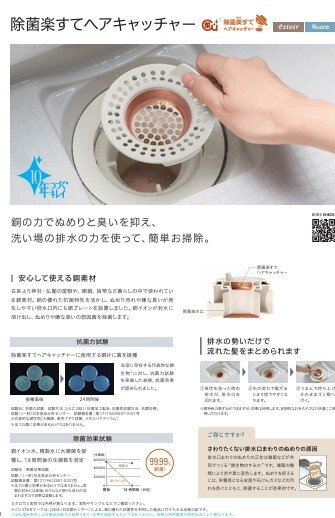 ◆銅の力でぬめり・臭いを抑え、髪の毛やゴミをしっかりためて、簡単に捨てられる『除菌楽すてヘアキャッチャー』