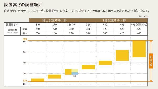 ◆システムバス設置必要寸法W2066×D1666×H2898㎜。ボルト脚360㎜の時。