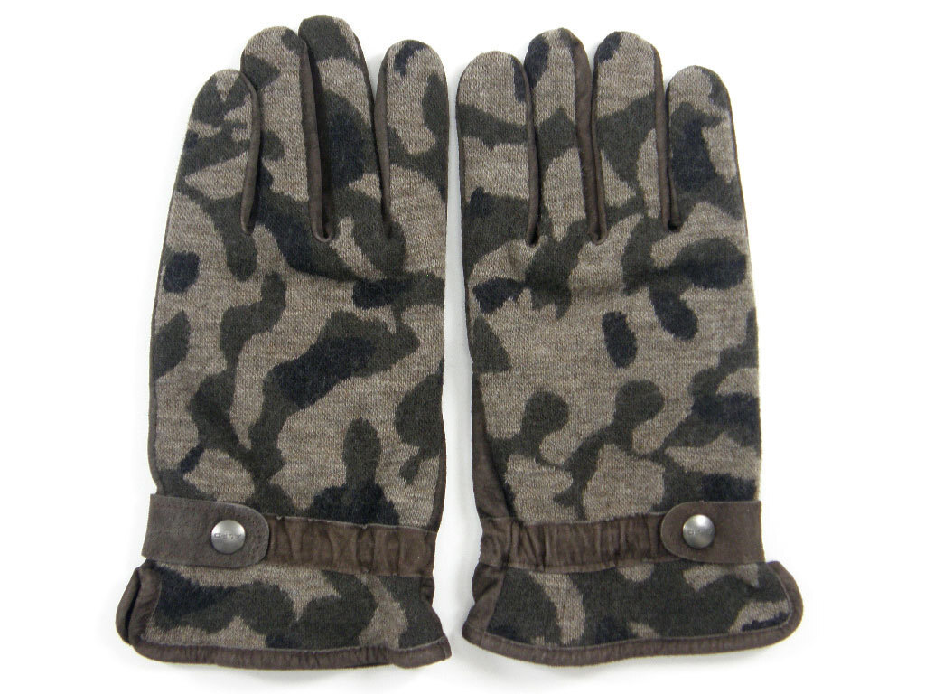 新品 ALPO イタリア製 【迷彩柄 カモフラージュ】 ストラップ グローブ 秋冬 S 羊革 レザー 毛 ウール ★332156 アルポ ビジネス
