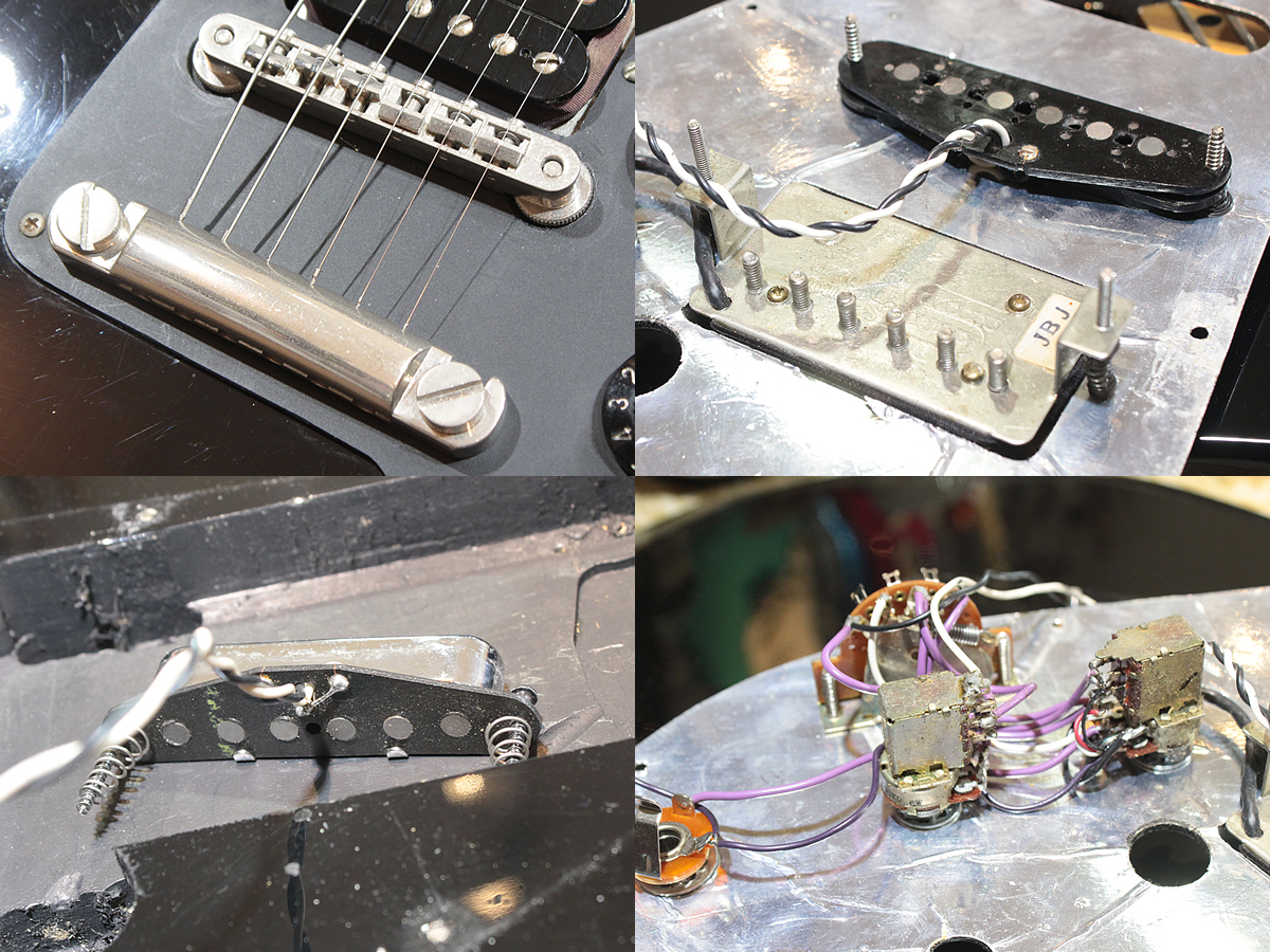 リアはセイモアダンカンJBのステッカーがあるので判断できるものの、フロントのTL、ミドルのSTはどのモデルか判断できかねます。リプレイスの際の発想やリード線の種類から同じくセイモアダンカン製と推測しますが、確実なものではないので、そのあたりはご了承いただければと存じます。