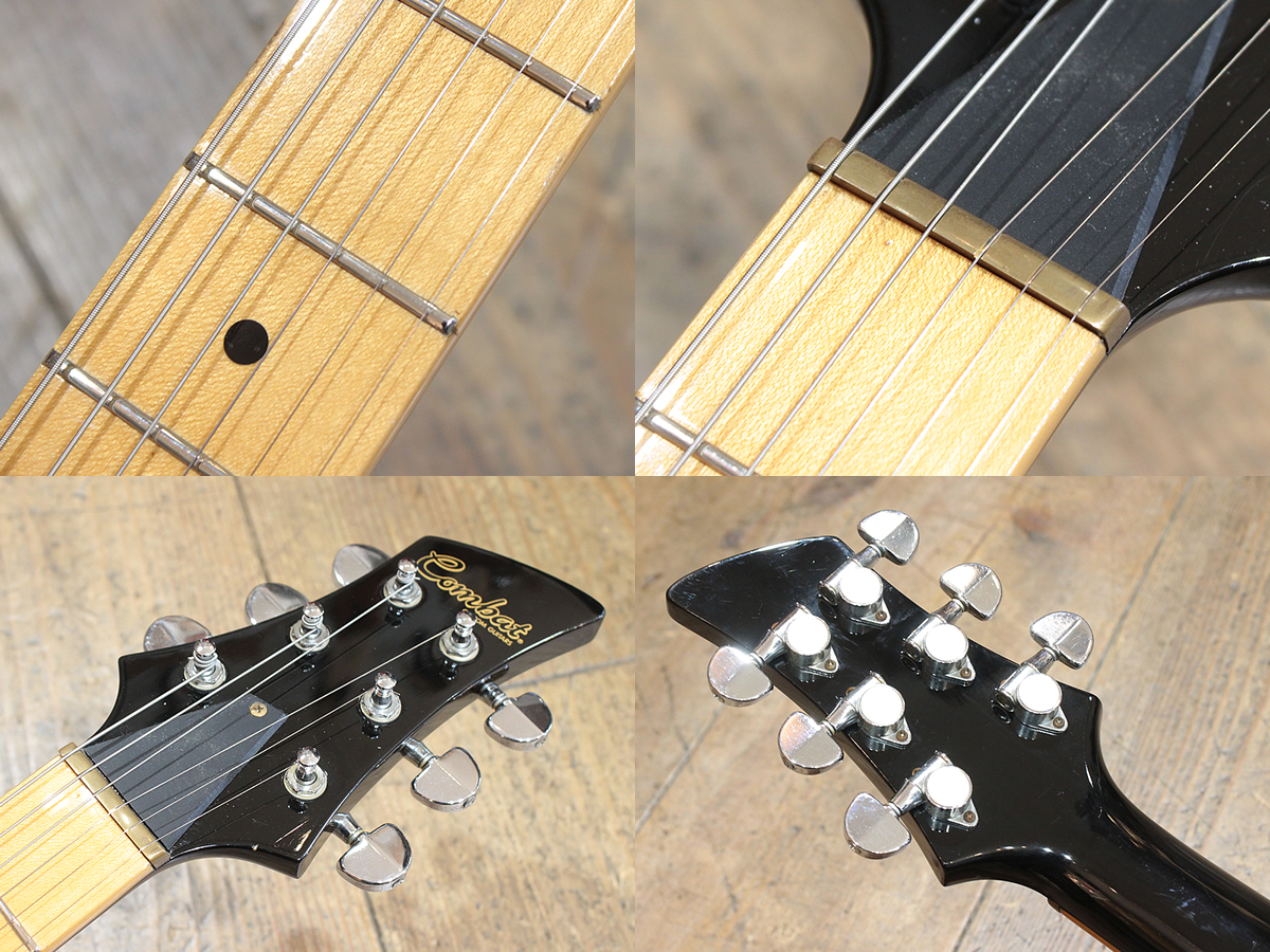 オーダーメイドとリペアを営む東京のコンバット。本機はそこでオーダーされた一本です。恐らくTartarosというモデルが基となっていると思われます。スルーネック構造ですが、塗装されているので木材は分かりかねます。