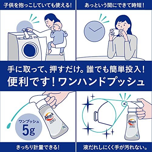 「【大容量】 アタックZERO 洗濯洗剤 液体 アタック液体史上 最高の清潔力 詰め替え 2000g」▼4901301411891▼(商品説明)・ 2kg ×1個 ・・Size:2kg ×1個・【高さ×幅×奥行き】315.0×255.0×140.0[ミリメートル]・2.0[kg]・成分:界面活性剤[51%、高級アルコール系(非イオン)、ヒドロキシアルカンスルホン酸塩、高級アルコール系(陰イオン)、脂肪酸系(陰イオン)]、安定化剤、酵素・洗濯洗剤 液体説明 商品紹介 アタック液体史上 最高の清潔力。落ちにくい汚れ、ニオイ、菌の隠れ家ゼロへ※1。 「抗菌+(プラス)※2※3」「ウイルス除去※4」「洗たく槽の防カビ※2」 蛍光増白剤無配合。 ※1多糖汚れの蓄積を抑える効果 ※2すべての菌・カビの増殖を抑制するわけではありません。 ※3抗菌に加えてニオイ菌のニオイ代謝を制御 ※4すべてのウイルスを除去するわけではありません。エンベロープタイプのウイルス1種で効果を検証 原材料・成分 成分:界面活性剤[51%、高級アルコール系(非イオン)、ヒドロキシアルカンスルホン酸塩、高級アルコール系(陰イオン)、脂肪酸系(陰イオン)]、安定化剤、酵素