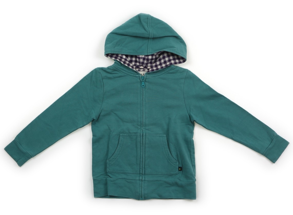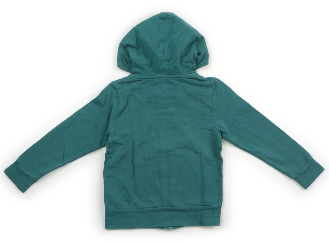 Grin kidsです。実際のサイズ表記は、115。ミニ裏毛生地。全体に色あせ・毛羽立ちが目立ち、使用感があります。