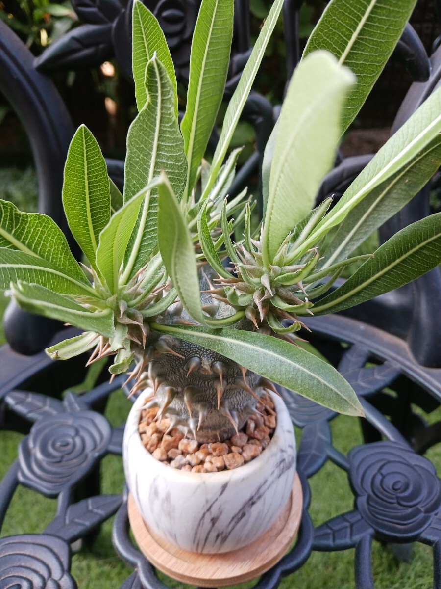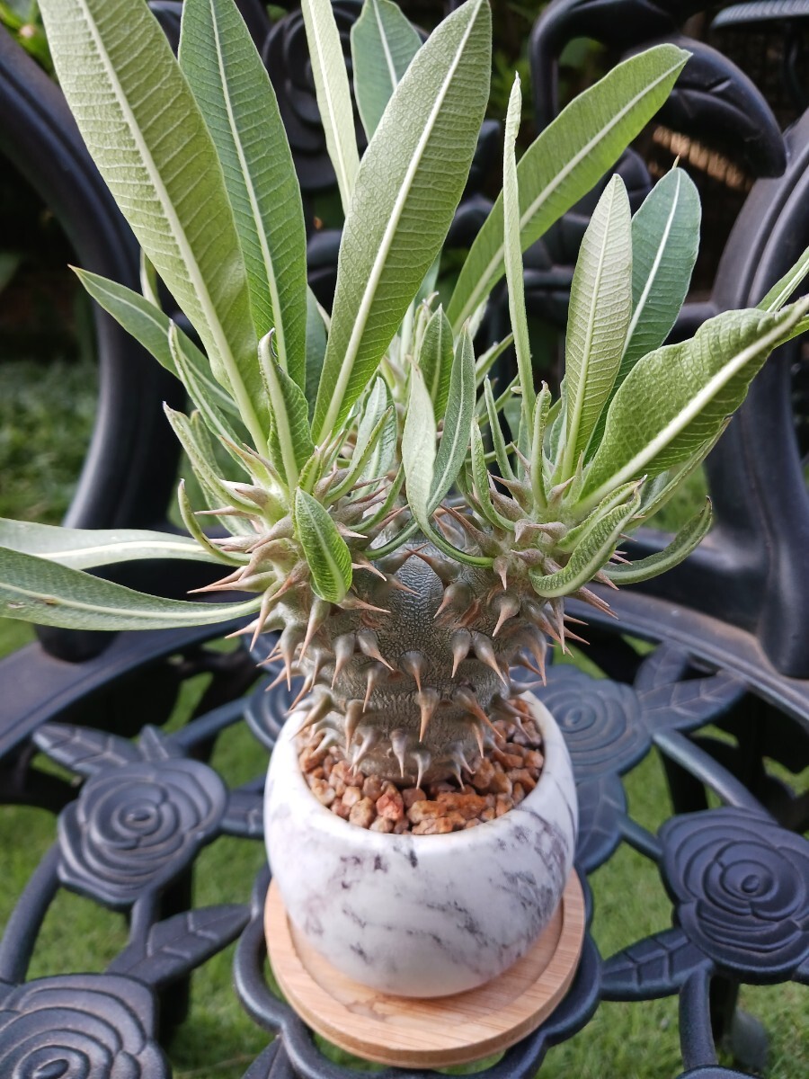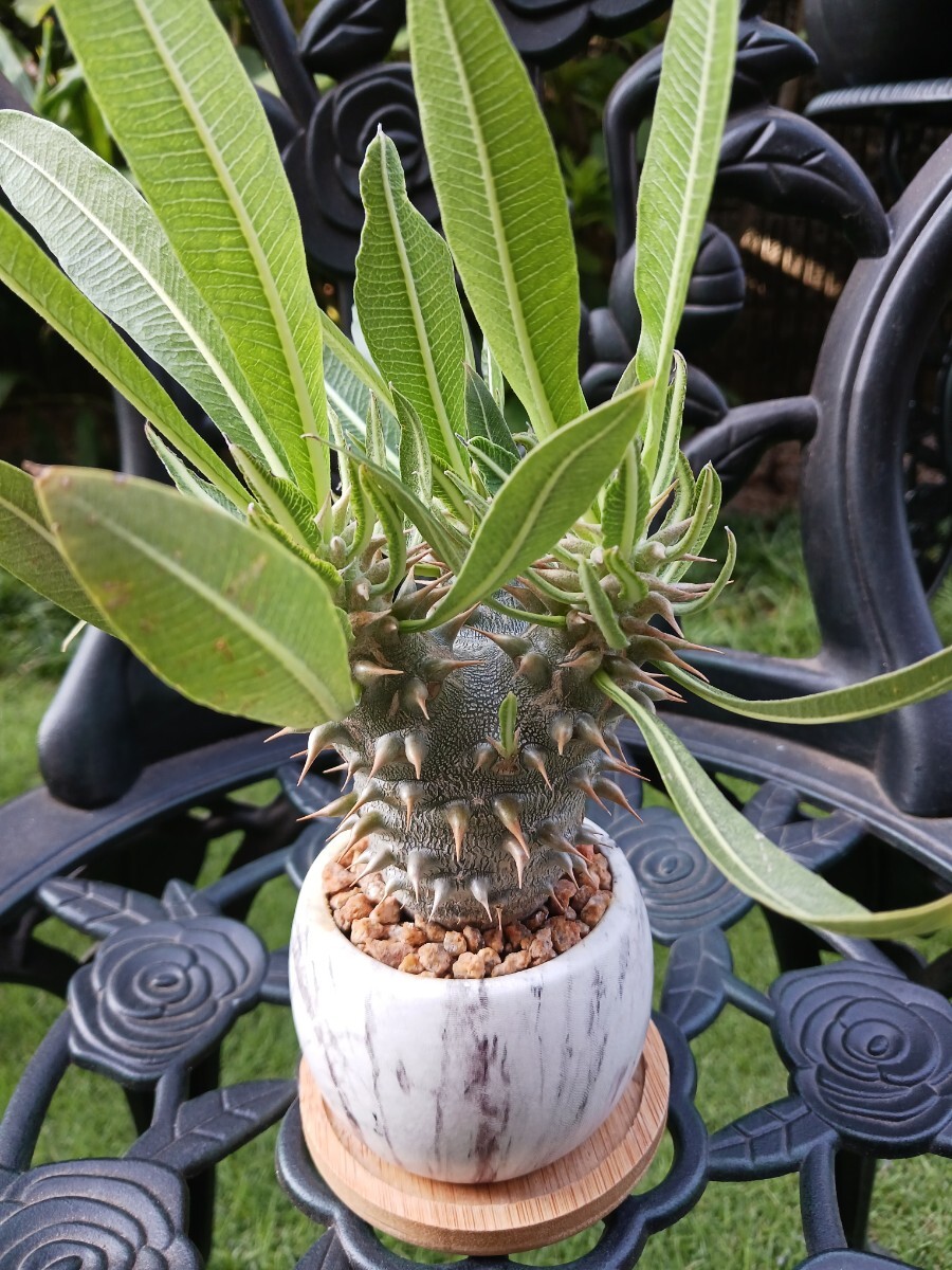 鉢のサイズ、高さ約55ミリ、直径約80ミリの陶器鉢に植えて管理しています。