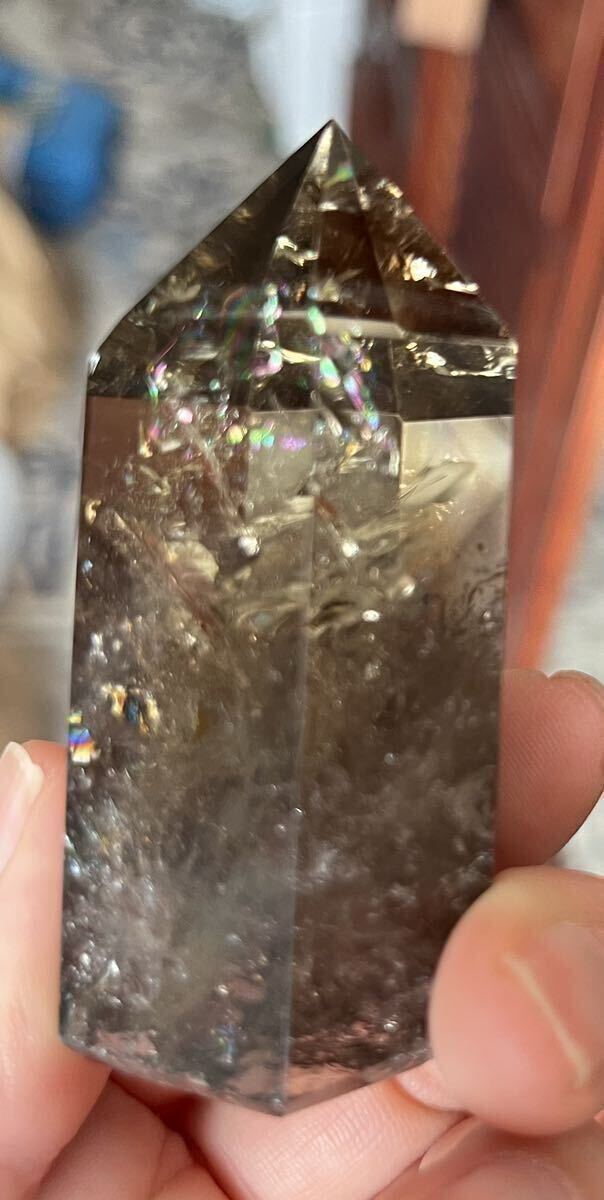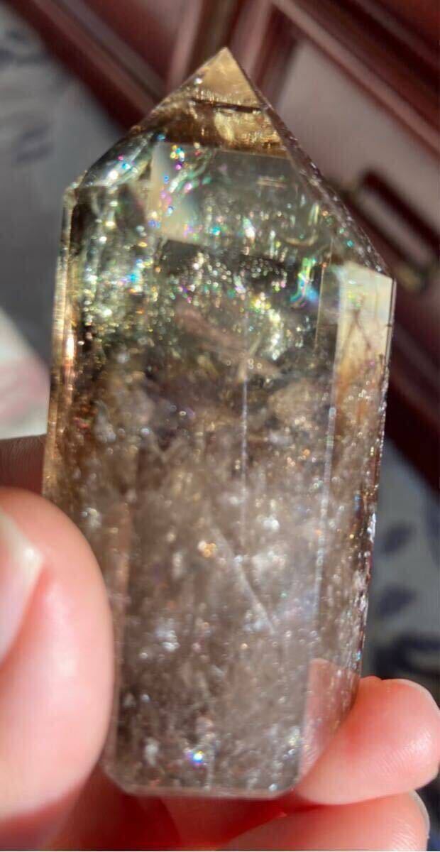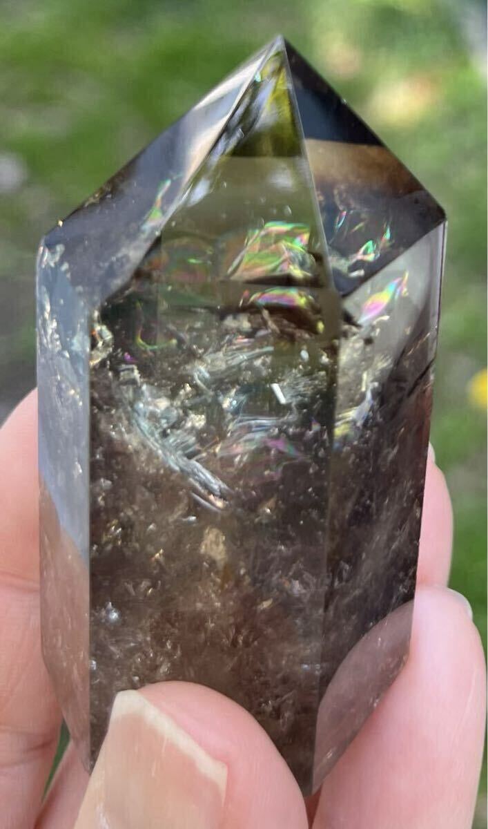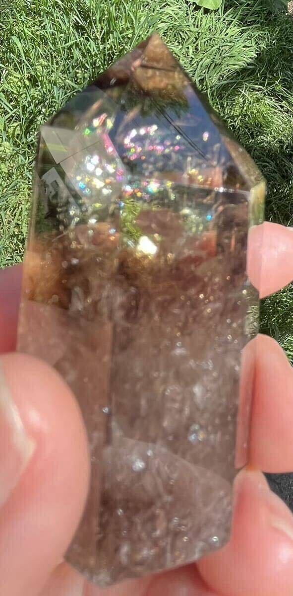 縦約67mm 横最長約30mm 厚さ最長約33mm 重さ103.1g ご覧の様に光の加減でレインボーが美しく沢山ご覧になれるダ-クシトリン天然石です。効果はお金の循環を良くし、商売の繁栄、仕事の成功へ導いてくれる