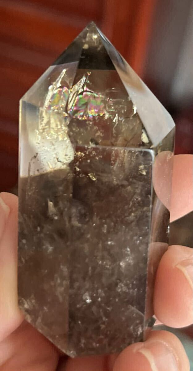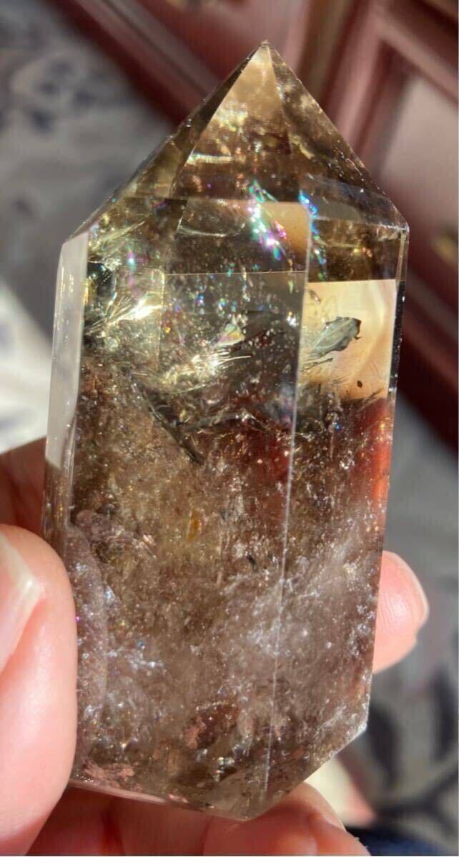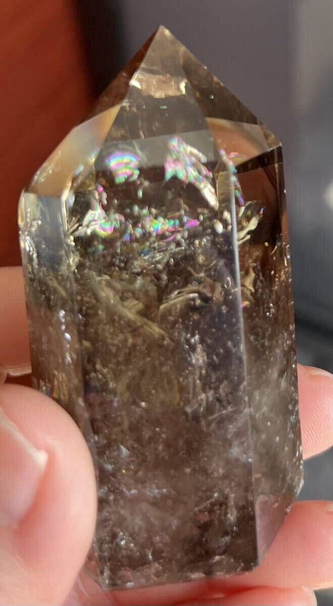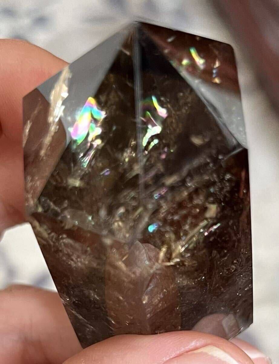 縦約67mm 横最長約30mm 厚さ最長約33mm 重さ103.1g ご覧の様に光の加減でレインボーが美しく沢山ご覧になれるダ-クシトリン天然石です。効果はお金の循環を良くし、商売の繁栄、仕事の成功へ導いてくれる