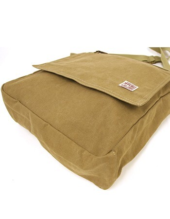 ムラ染めで味のある10号帆布を使用した、女性、男性共に使用していただけるスタイルを選ばないベーシックショルダーバッグです。タウンユースからトラベルまで汎用性の広いA4サイズがピッタリ入るショルダーバッグです。