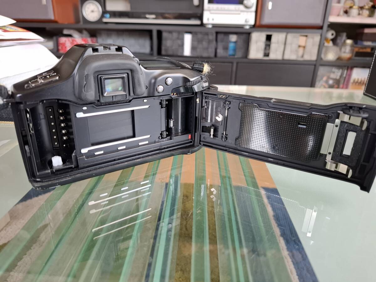注意事項:電源確認、シャッター切れます。ただしファインダー部分のシリコンカバーが破れています。(写真参考)