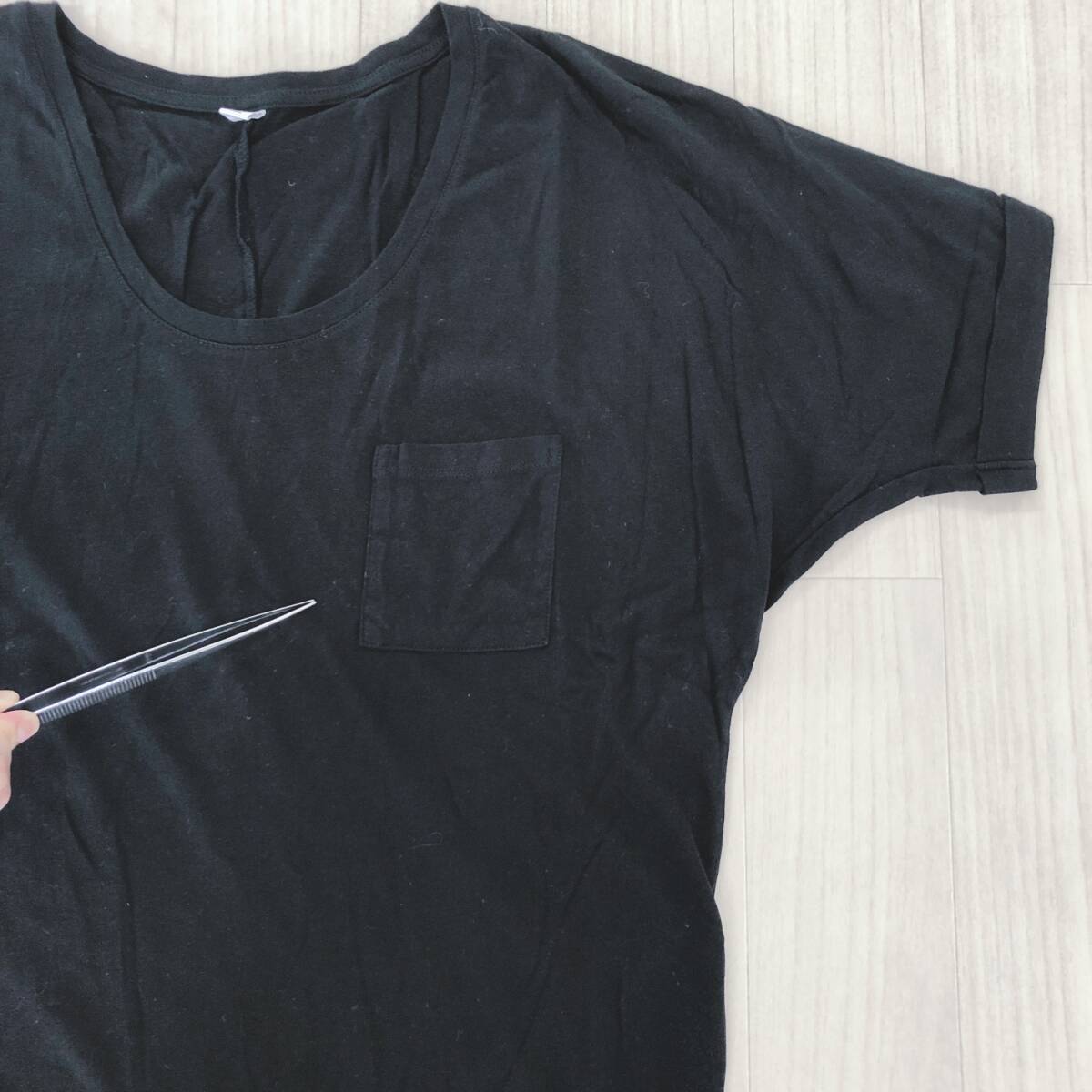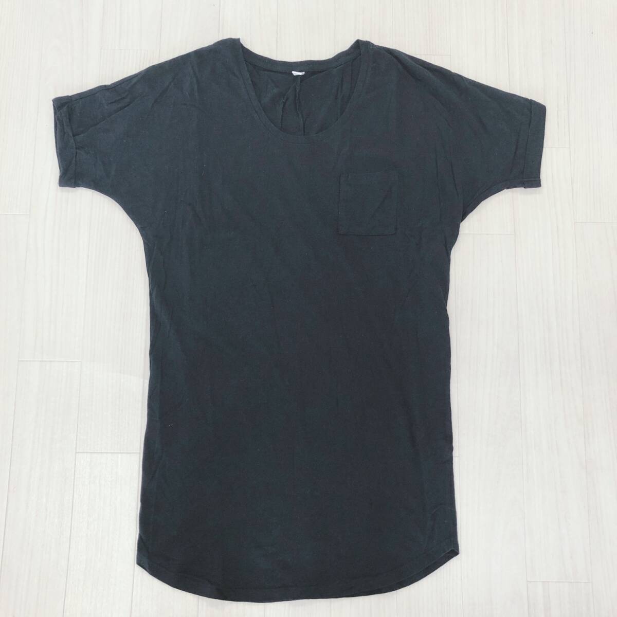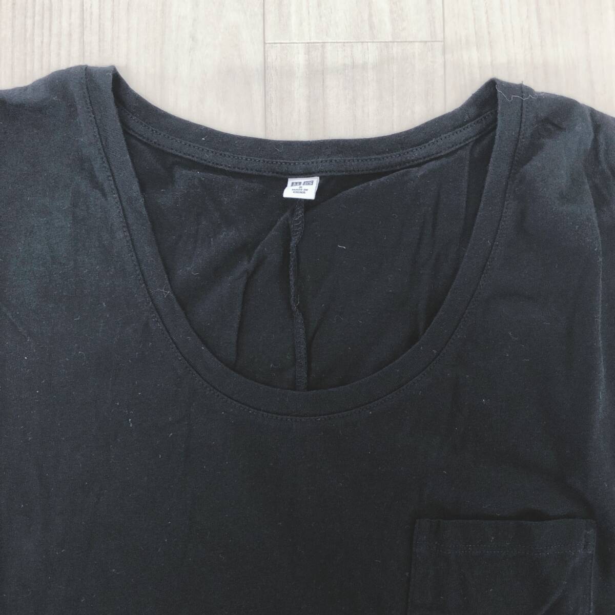 Y1525 美品 UNIQLO ユニクロ レディース トップス Tシャツ 半袖 胸ポケット 薄手 S ブラック 黒 無地 綿100% シンプル 涼しげ スポーティ