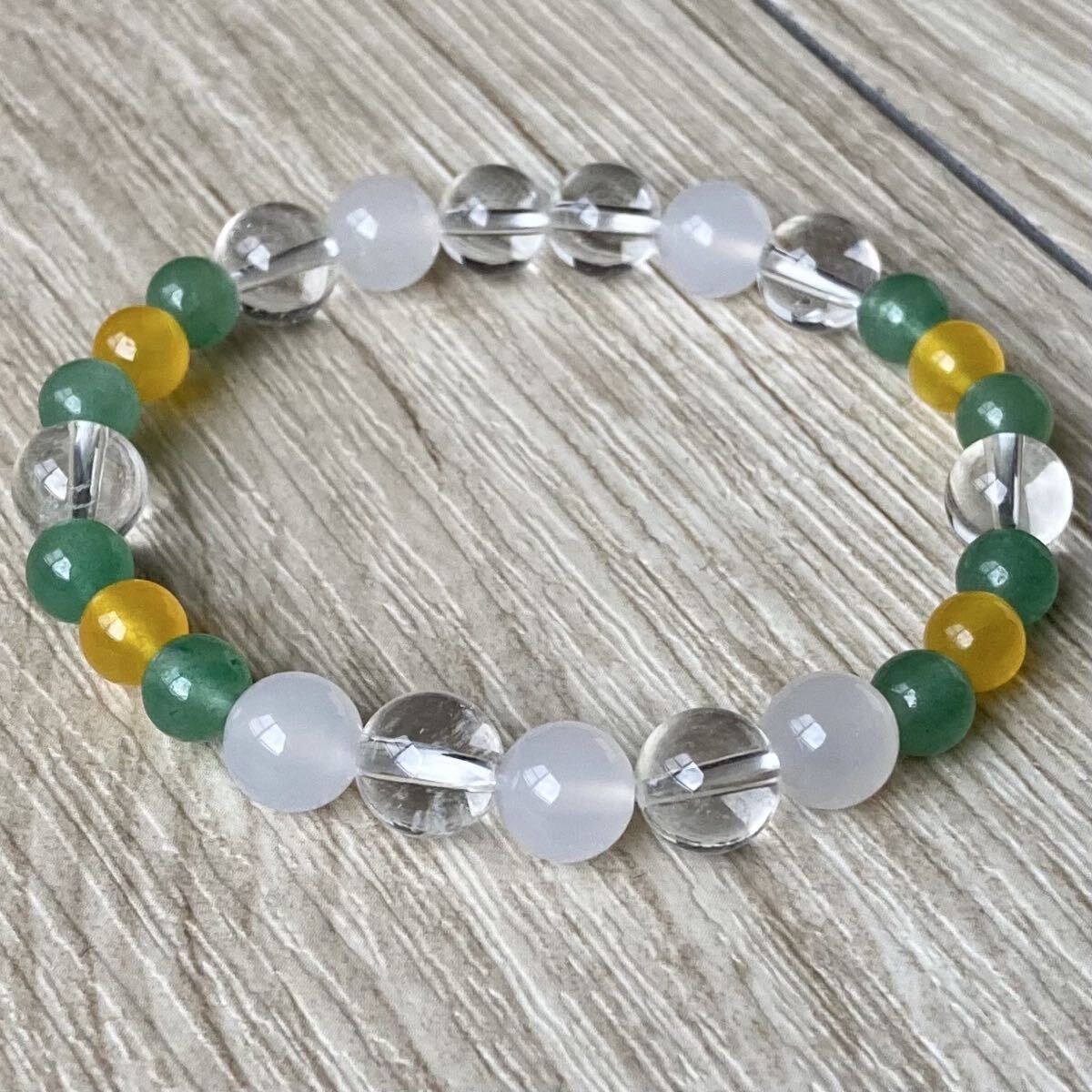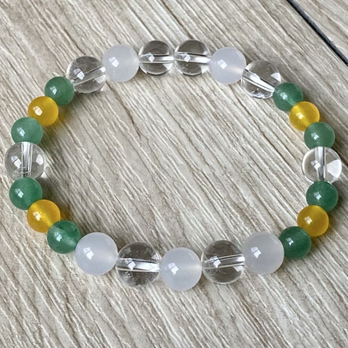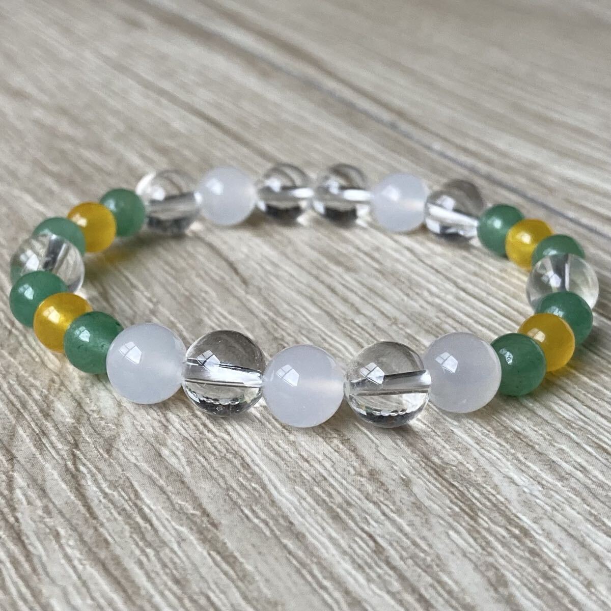 これらの石を組み合わせると、周りにいる大切な人との絆を深め、また人間関係を円滑にしてくれる社交性をたかめるブレスレットです
