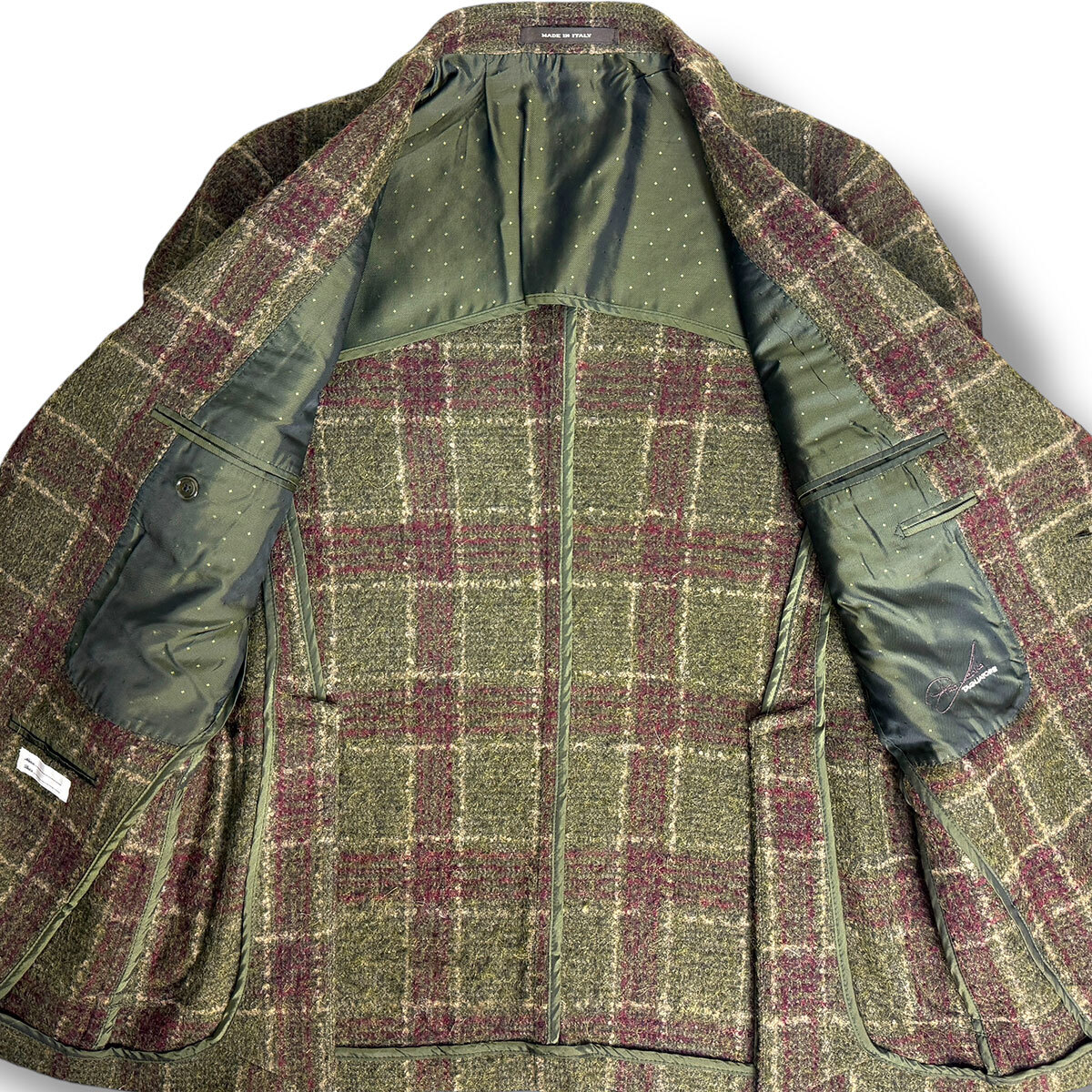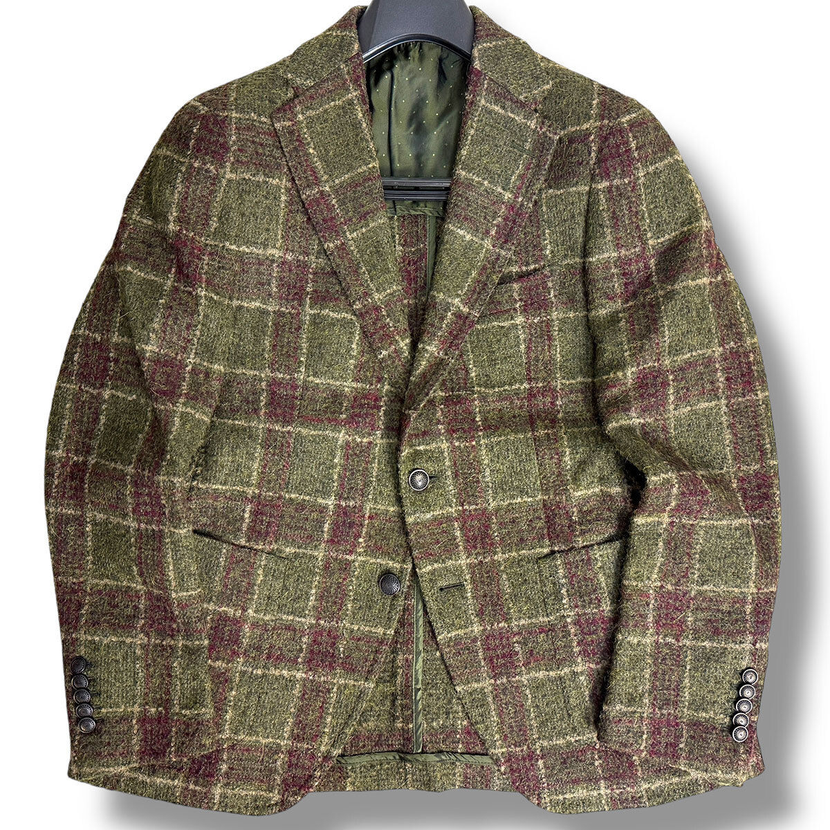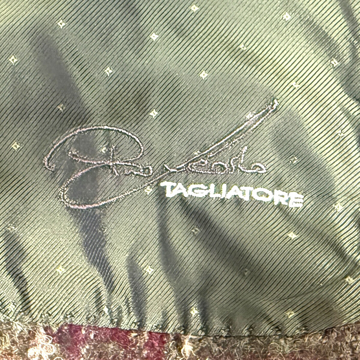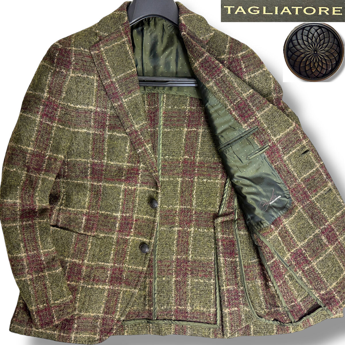 J7424 美品 タリアトーレ PINO LERARIO チェック柄ツイードジャケット ブラウン 48 TAGLIATORE