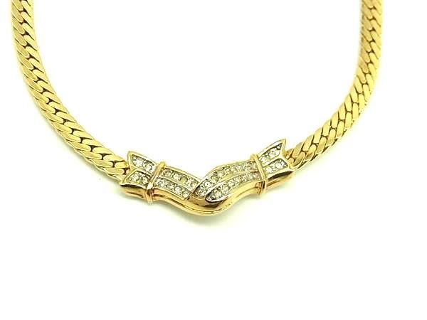 ■美品■ NINA RICCI ニナリッチ ラインストーン クリップ式 イヤリング ネックレス アクセサリー 2点セット ゴールド系 DJ5292