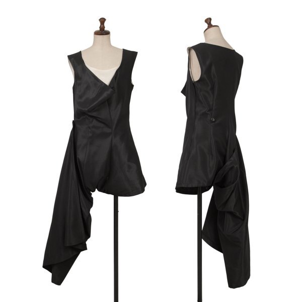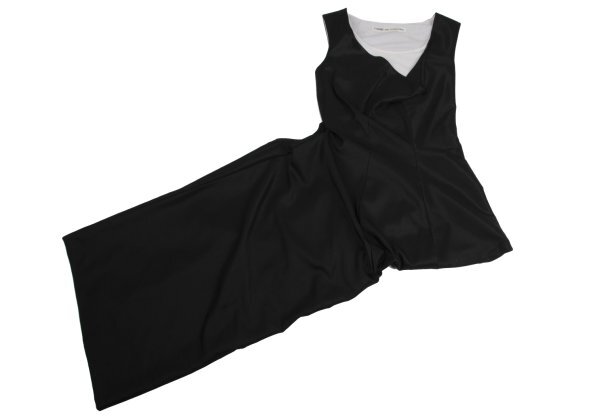 コムデギャルソンCOMME des GARCONS ウールポリドレープアシンメトリーデザインノースリーブワンピース 黒M |
