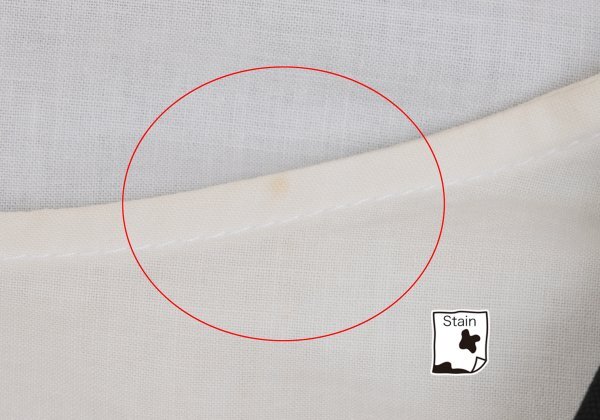 コンディション | 前後身頃に引っ掛け・擦れ・汚れ・糸引き、首元にシミ、首周りに黄ばみがあります(写真参照)。その他目立ったシミ、汚れ、ほつれ等なくいい状態です。クリーニング済み。 |
