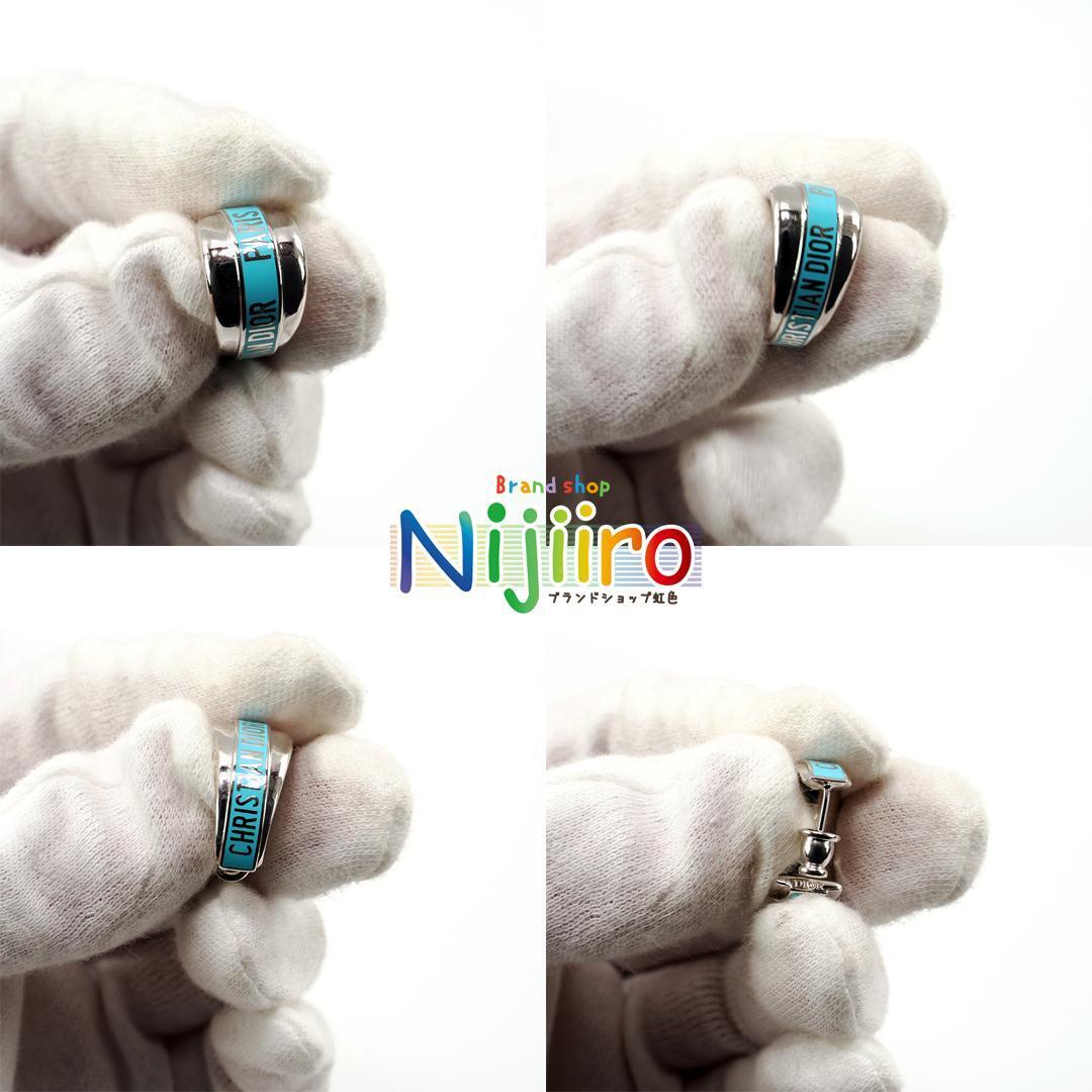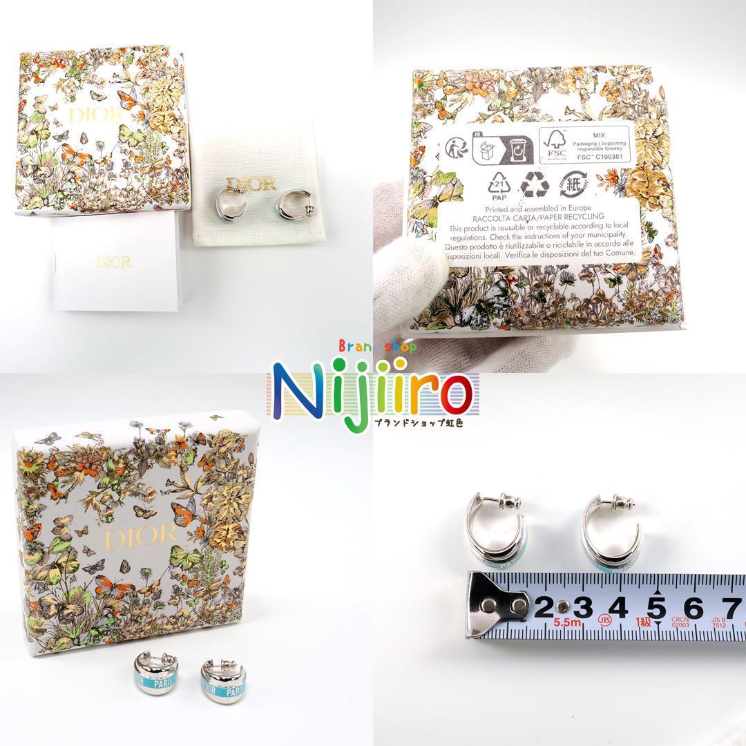 ピカピカのシルバー色に水色でChristian Dior Parisの文字がデザインされております。