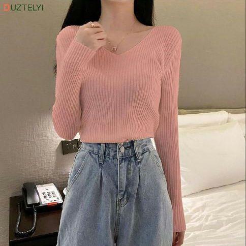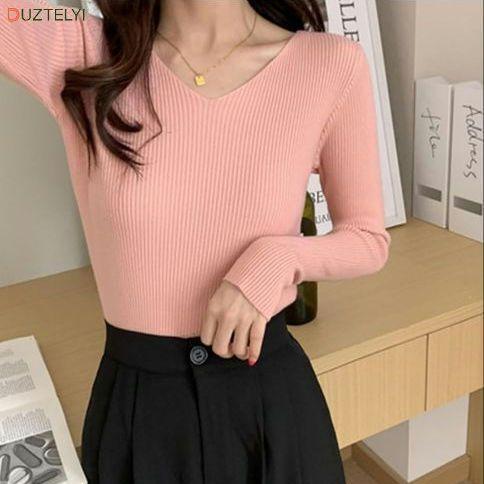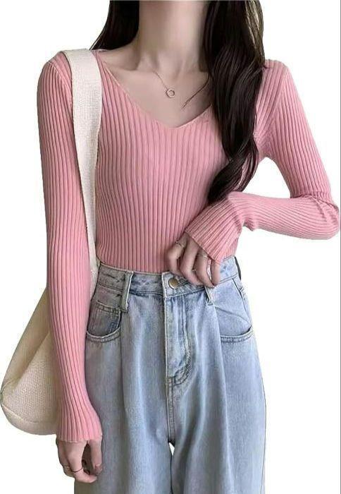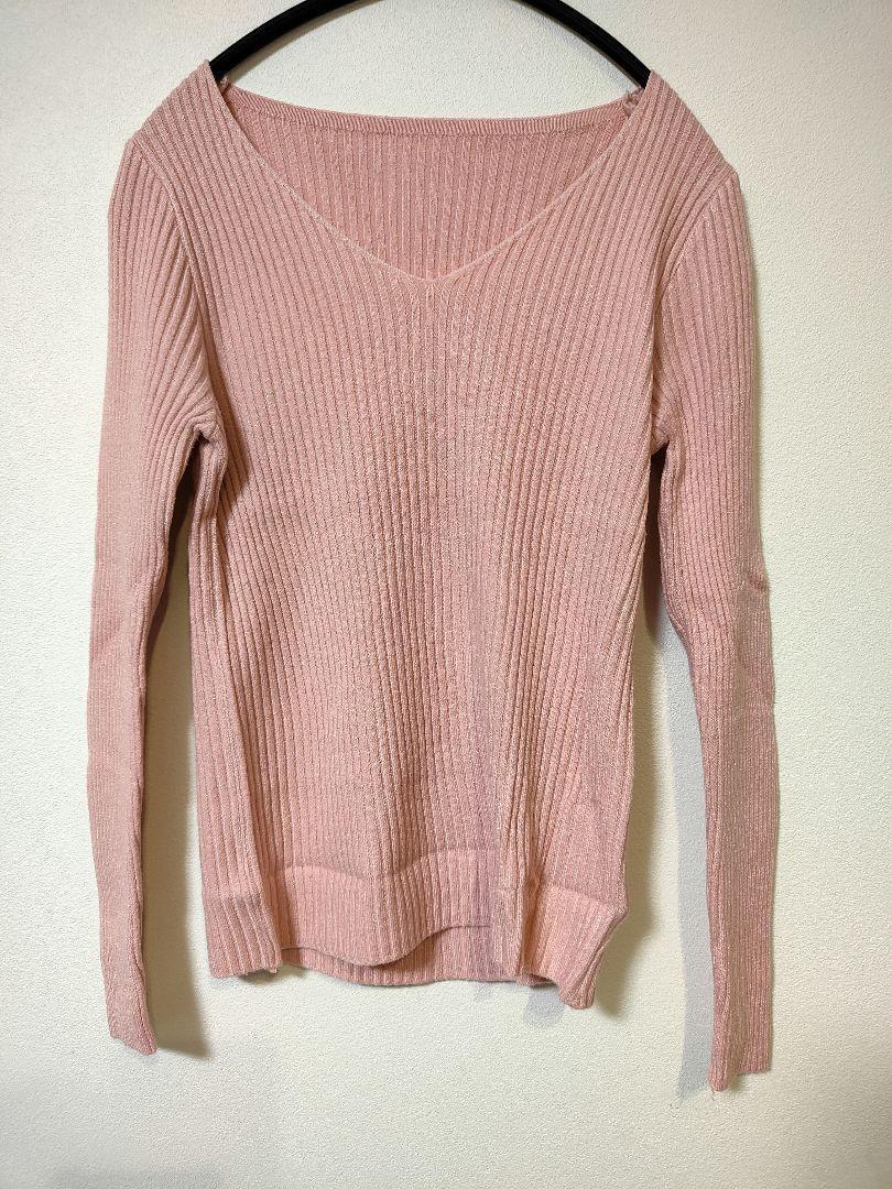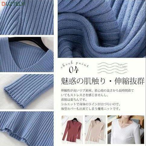 ・浅Vネックリブニットだから、肌見せ初心者挑戦したい方もしやすいです。
