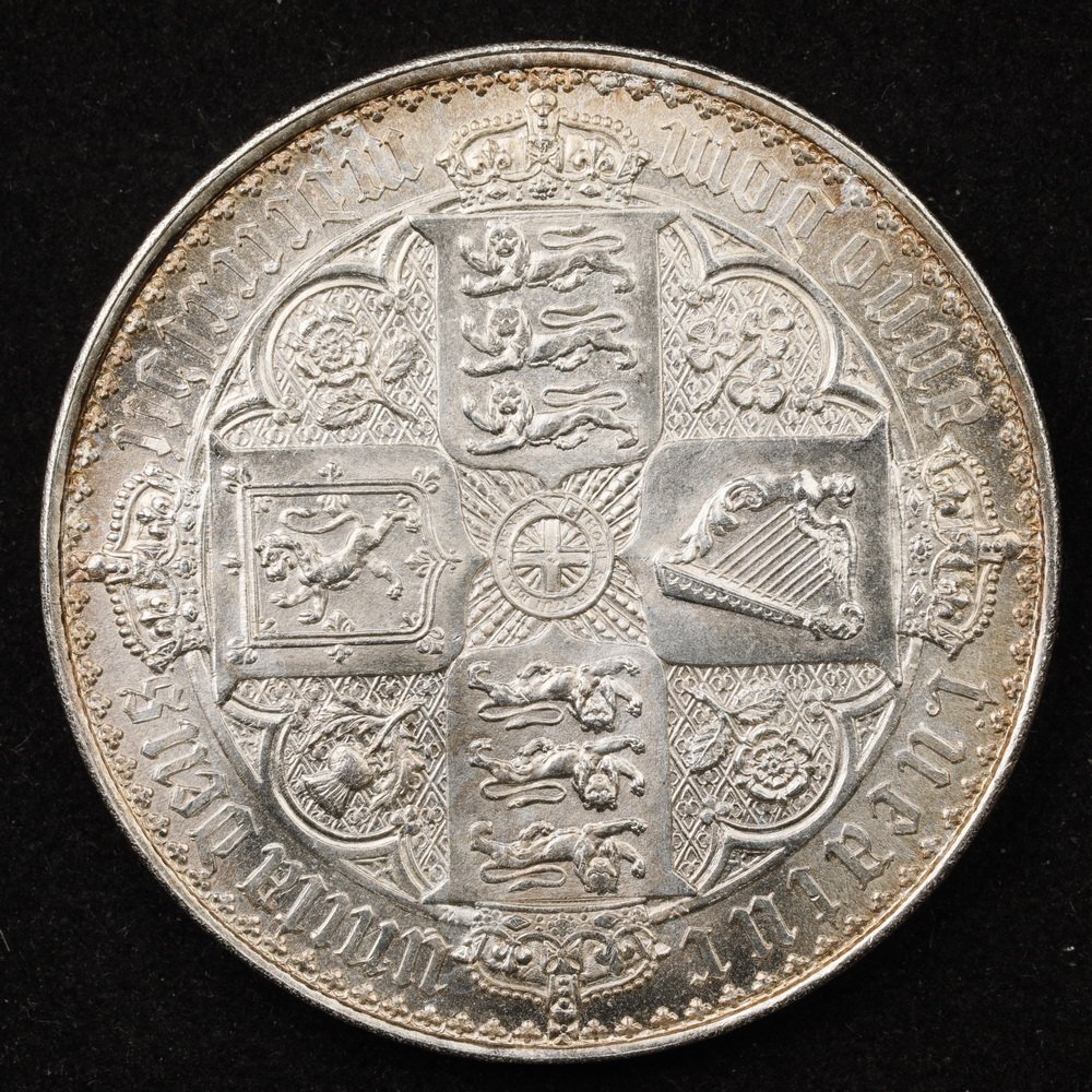Y1493★イギリス銀貨/1847年/ヴィクトリア女王 GOTHIC TYPE/1クローナ/直径約39.16mm 重量約28.4g 厚み約2.83mm