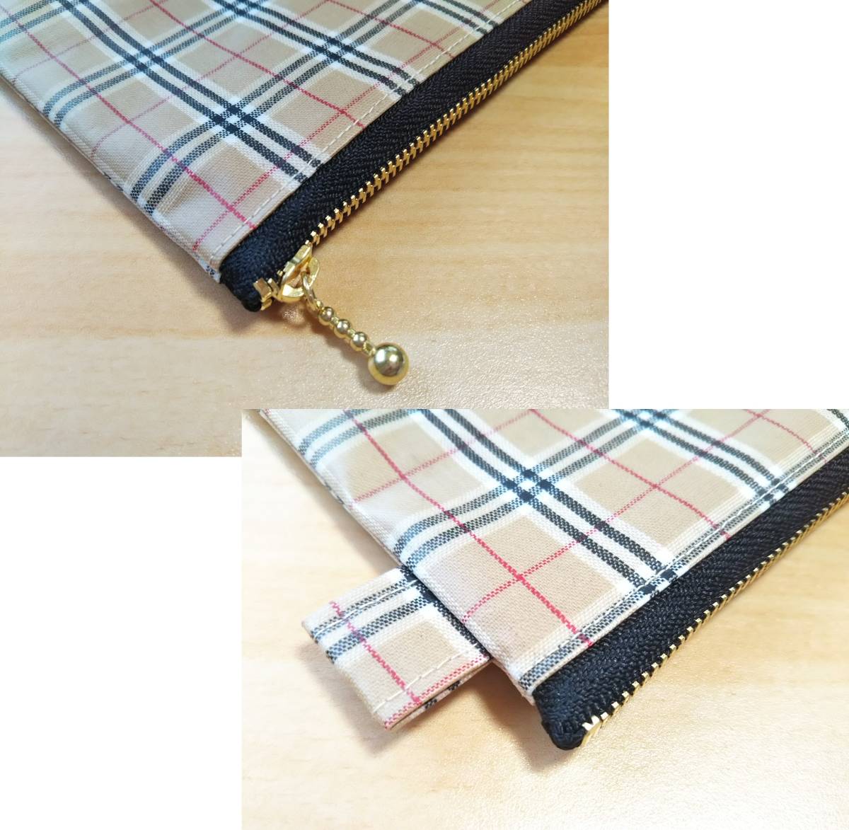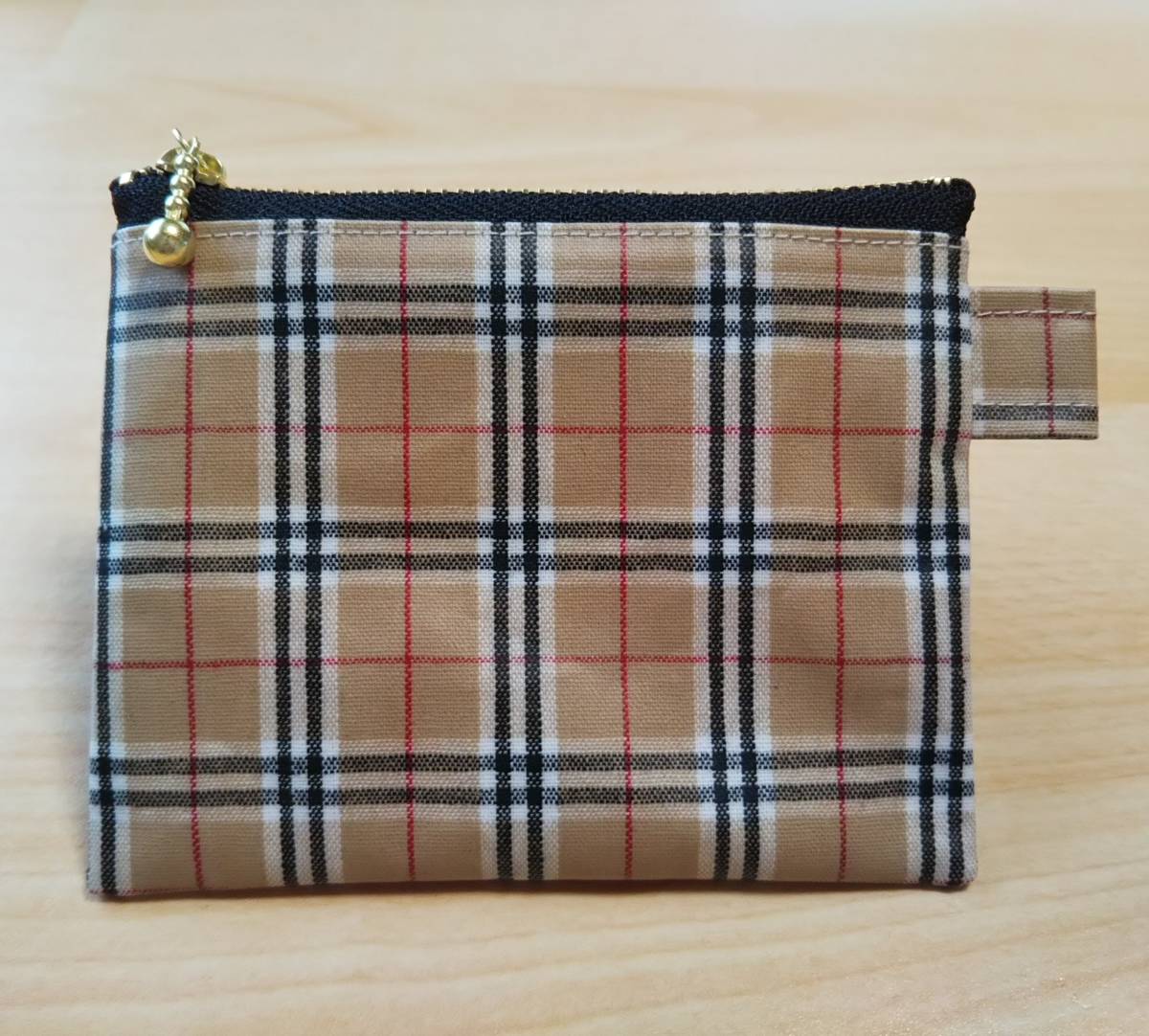 <印鑑ポーチ>タータンチェックベージュ♪コインケース♪ラミネート加工♪小銭入れ♪ハンドメイド