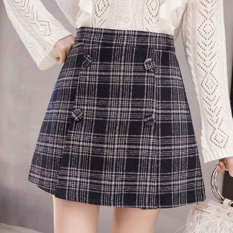 チェック柄 ミニスカート レディース ハイウエスト Aラインスカート ボトムス S ネイビー