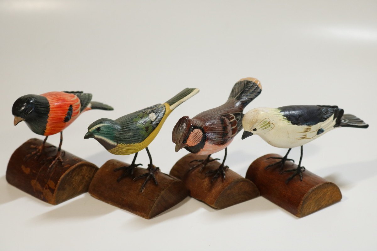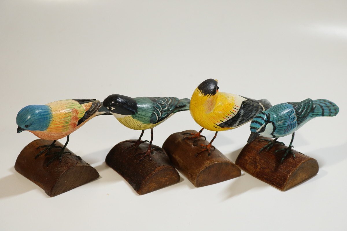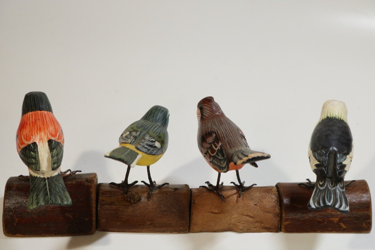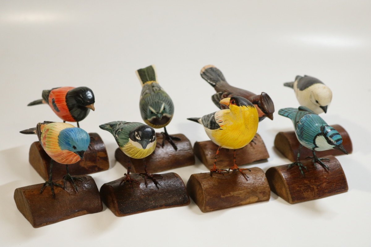T271 木彫り鳥置物8点 野鳥 アンティーク 置物