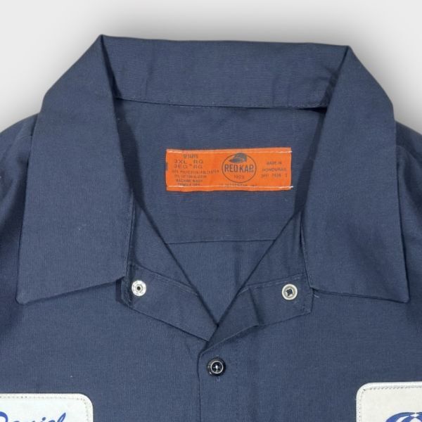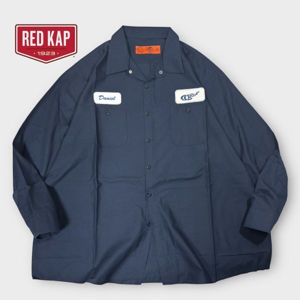 ★美品★BIGサイズ★iSD企業ロゴワッペン★RED KAP長袖ワークシャツ size3XL 上部スナップボタン レッドキャップ 古着 クリーニング プレス済み 2473
