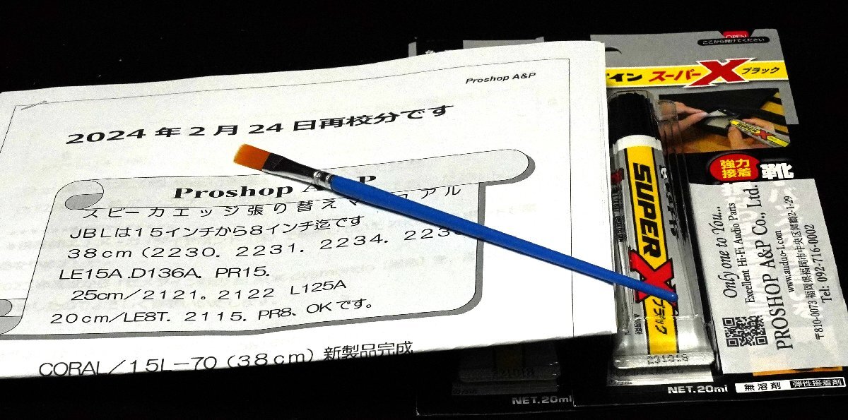 A&P●JBL/LE8T/高密度HiProウレタンエッジキット/ペアです。(新品) 接着剤付(2本)+小筆+マニアル」付 (送料無料) 【 商品説明 】 ●●● オリジナルと同じ「しなやかさ」が必要です。 最近、市場に見られる、低価格のエスレン系のエッジは「強度が強い」事は認めますが「JBLらしさ」がございません。 ● 特に「ダンピングの中にデリカシイ」が感じられません。 「シンフォニ-のppp」の時に明確に解ります。 ●やはり「エッジ」は ★ ス-パ- 高 密 度ハイウレタンエッジです。 オリジナルと同一です。 JBL/LE8T専用です。 ●材質は米国製エッジ用特殊ウレタン(NASA米国航空宇宙局及び高度化学産業でも使用) を500㌧大型ヒ-トプレス機で二段階ヒ-トプレスしロールカーブを整形するという、高度かつ複雑な加工技術の導入により従来他社のような、ペラペラの補修キット用のエッジとは根本的に異なります。 ●二重加熱加工いますから裏から表にエア-が漏れるとかまた水分が移動する事はありません 。 ●よって完全にダンピングの効いた低音を再生いたします。 原型同じのロールカーブ(山)が形成されており、また、内径はあらかじめ裁断済みですから、今までの他社製品と比べて、張り替えは非常に簡単です。 ●この事は、非常に大事です。 また、自分で出来るため非常な革命的な低コストです。 自分の労賃はタダと理解ください。 色は黒色です。硬化後比重は軽く、硬くなりますが爪で押すと凹むような弾力性もあります。 収縮があり若干の盛り上がりも平らになります 不明な点は、御質問をお受けいたします。 ●神経質な方や少しでも不安を感じられた方は、トラブルの原因にもなりかねませんのでご入札をお控えください ●(送料無料) ● 新規の方は事前に購入する意志を記載ください ●●福岡セントラル試聴室「CASA-DELLA-MUSICA」で引き取りできます。(要予約) 【 送 料 】 ●(送料無料) ●落札時ストアからのメールを必ずご覧ください。取引に必要な情報が記載してあります。 ●不明な点がございましたら質問欄からご連絡ください。 |