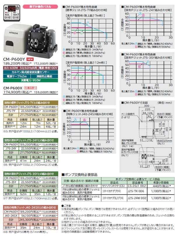 日立 CM-P600Y 浅深両用自動ポンプ インバーター ミニタンク式 新品 在庫有 浅深両用[自動]