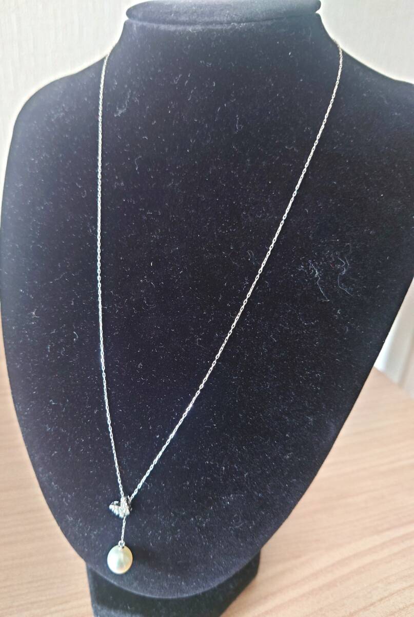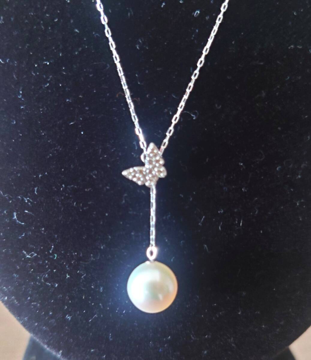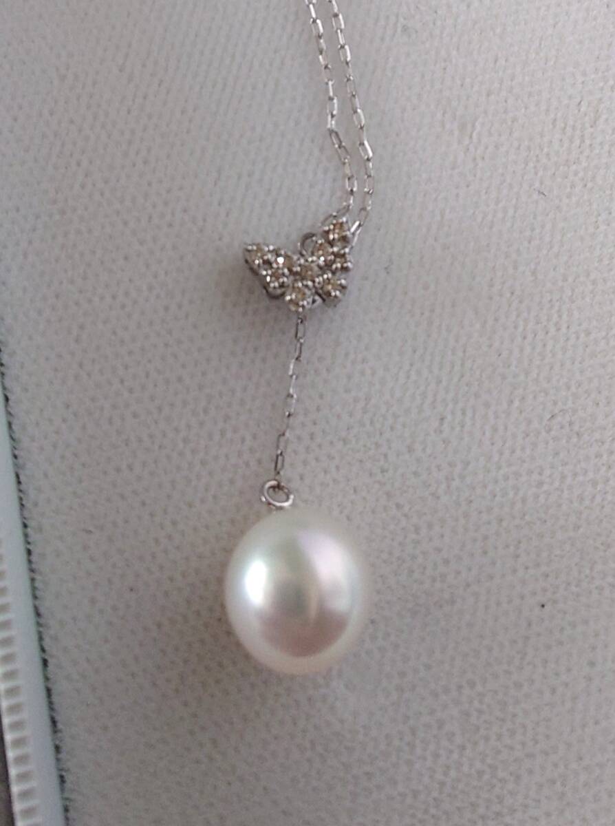 ・K18WG ダイヤ バタフライ パール ネックレス 18金ホワイトゴールド 首回り:約40㎝ 重さ:約2.4g パール:約8mm玉 YU-WA Creation Holding