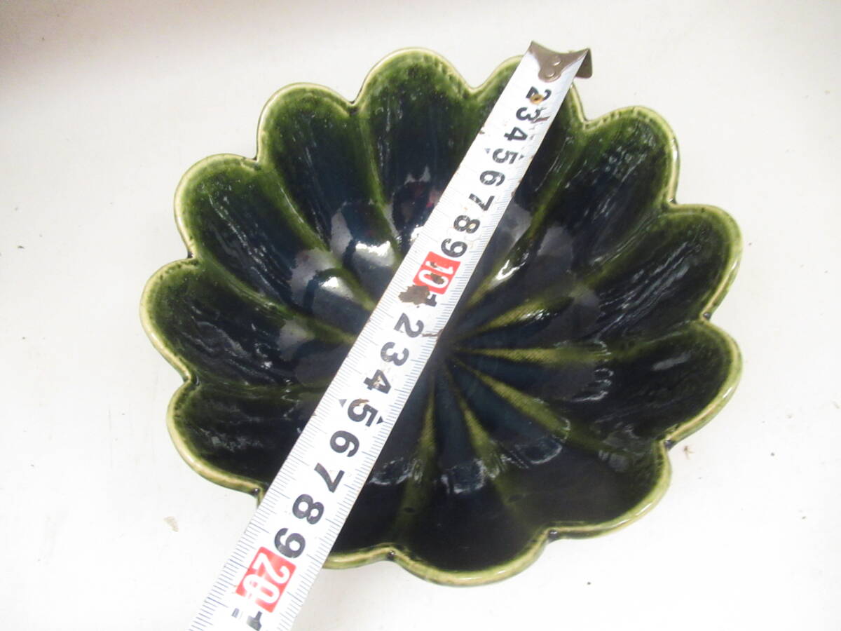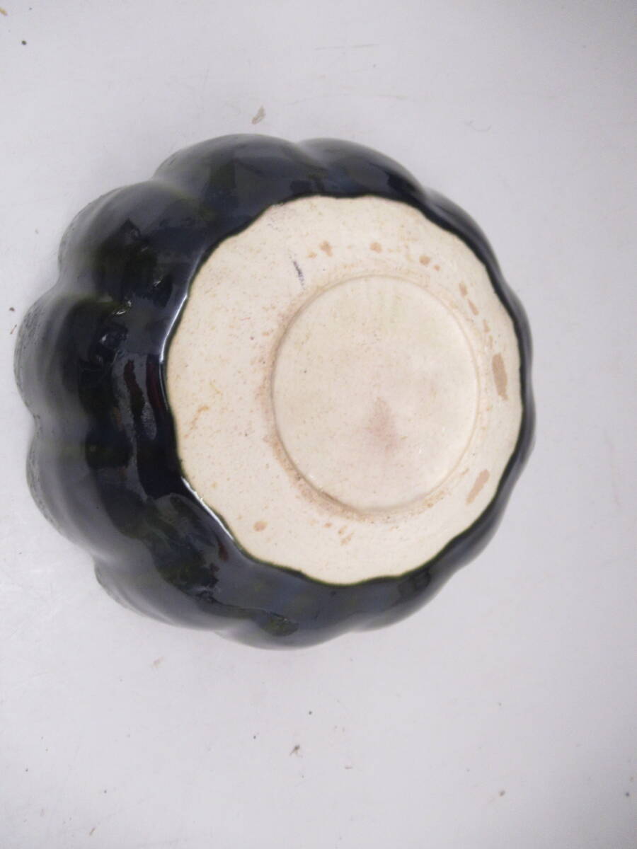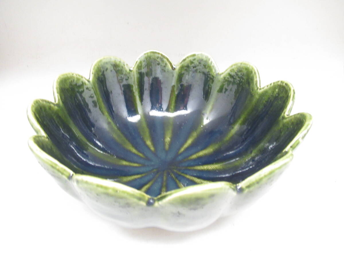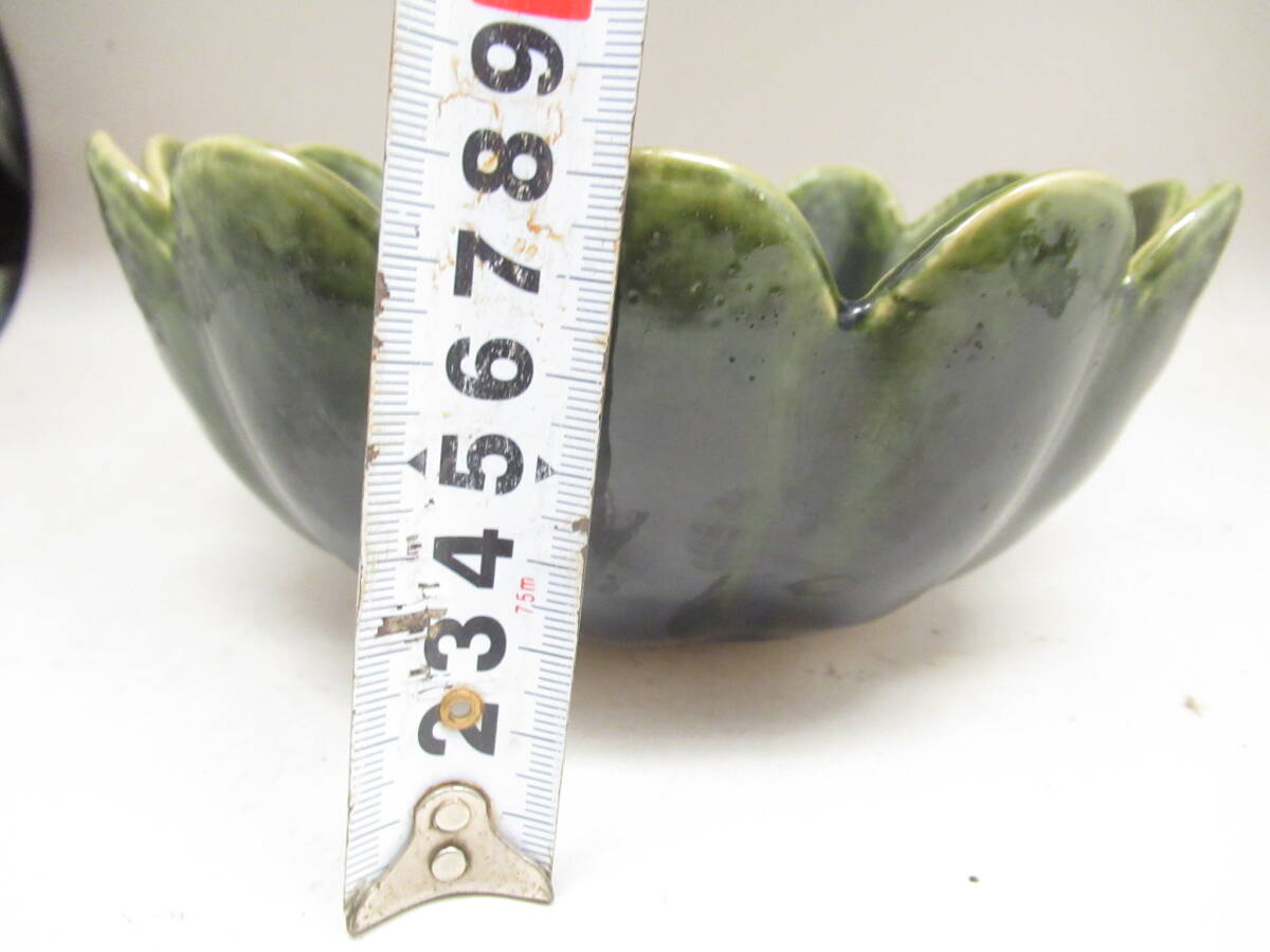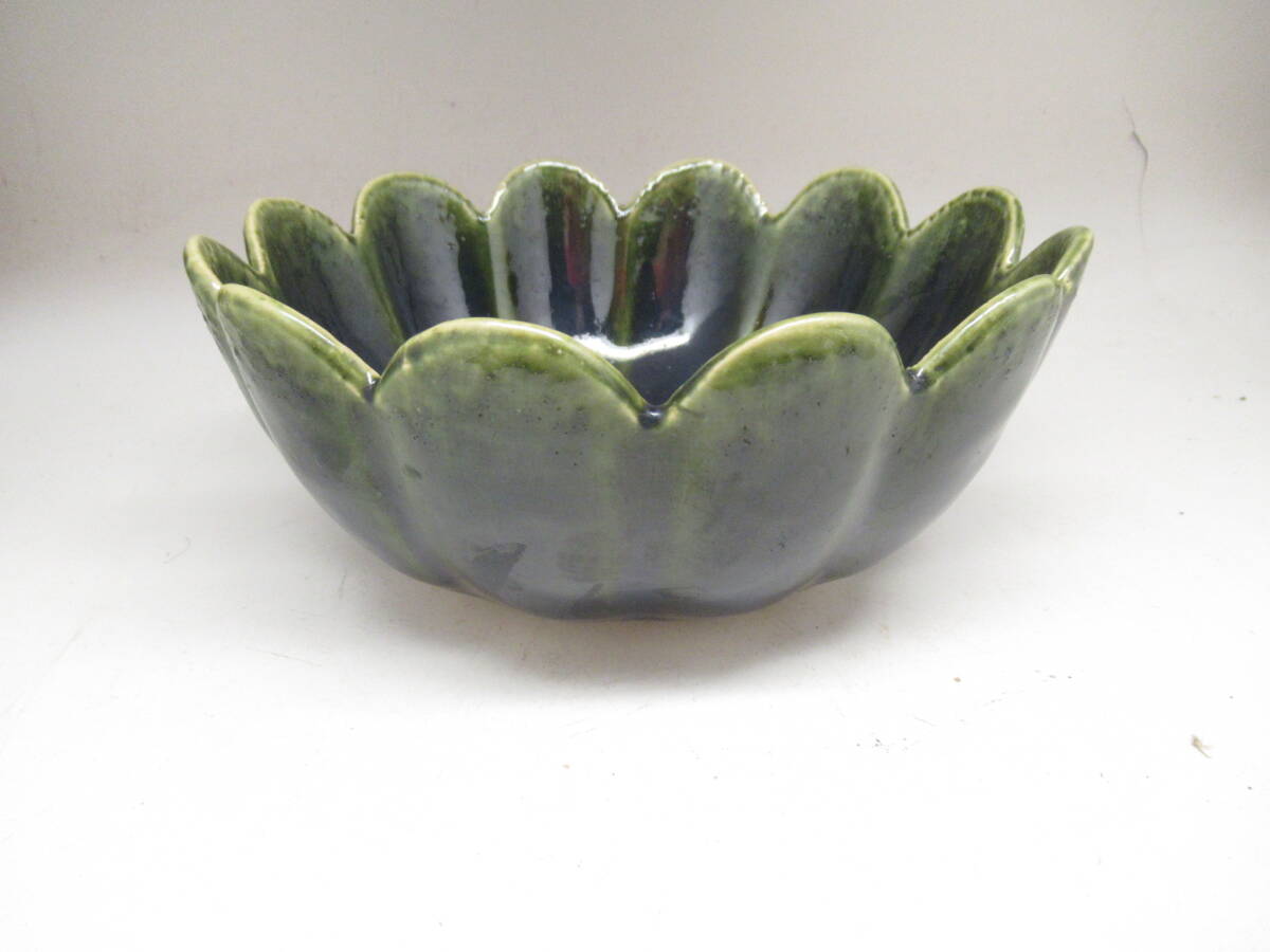 不老園 造 織部 緑釉輪花菓子器鉢 箱無し 中古茶道具 茶器 菓子器 深鉢