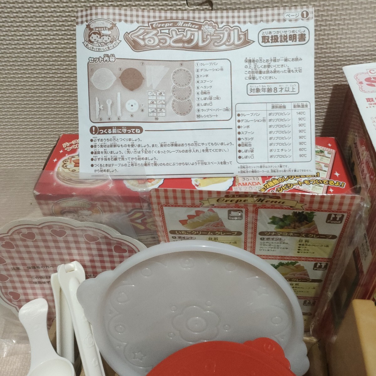 TOMYカントリーキッチン stela 似顔絵クッキー ステラ クッキー型 クレープメーカー バンダイ くるっとクレープ セットになります。 usedにつき多少のヨゴレ等が 有りますが使用に問題有りません。 パーツは取説見ながら確認しましたが 揃っているようでした。 ギフトラベルやラップシート等 は未使用です。 外箱ヨゴレ、ダメージ有りです。 写真参照下さい。 used品につき御理解頂ける方のみ ノークレーム・ノーリターンで御入札をお願いします。 (神経質な方は入札をお控え下さい。)